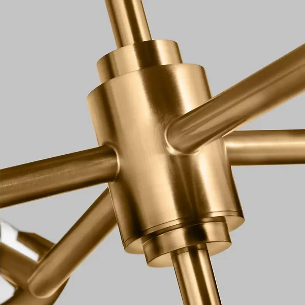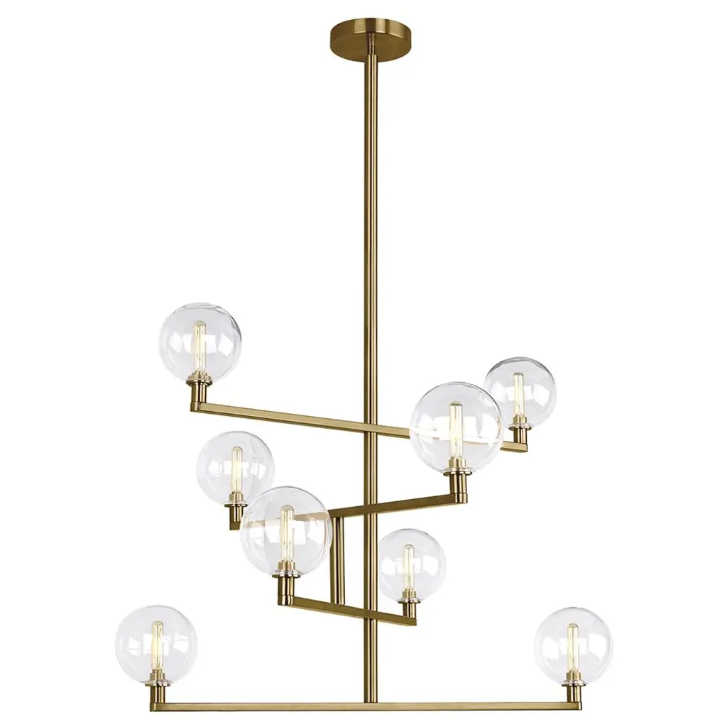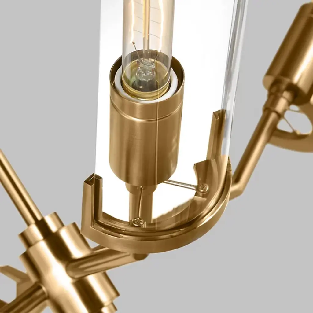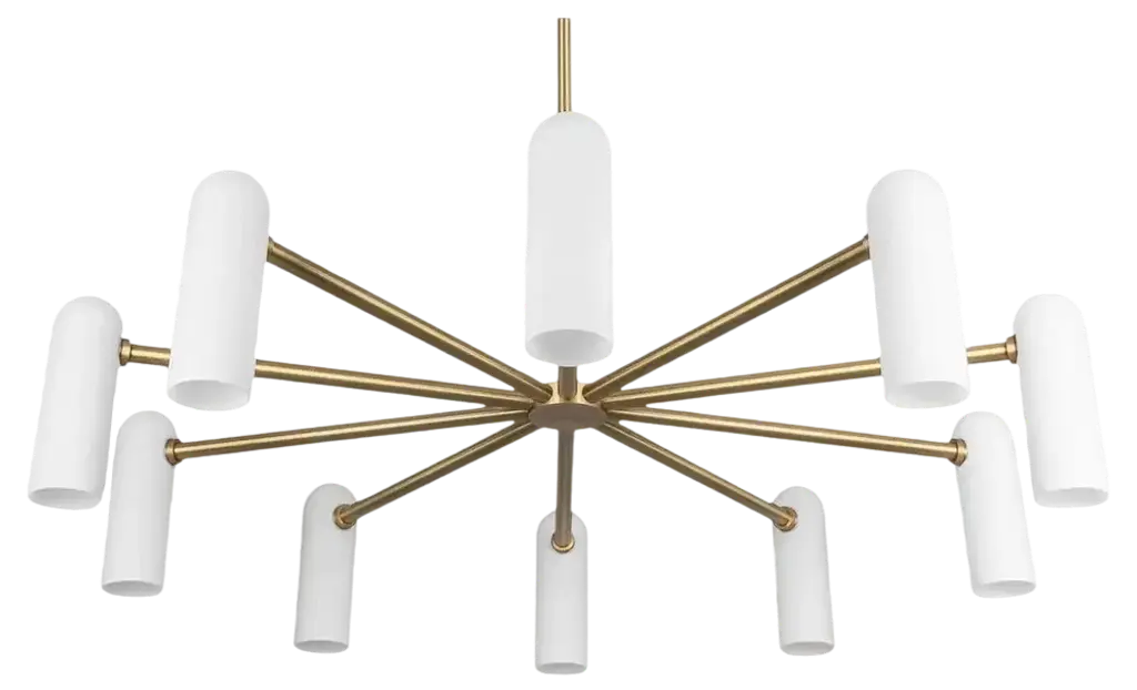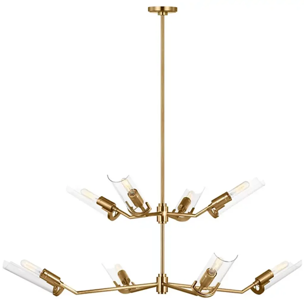 The Mezzo 2-Tier Chandelier from Visual Comfort Studio is a focal point of a living space, uplifting with elegant shapes and spacious light. The chandelier’s mid-century modern influence reflects in its elegant finish. This finish wraps a metal construction defined by a slender downrod suspension and an angular series of arms. Lamp holders on each arm receive brilliant lamps and glass shades that add a touch of shine. The lamps face in every direction and turn on as a warm, atmospheric glow.