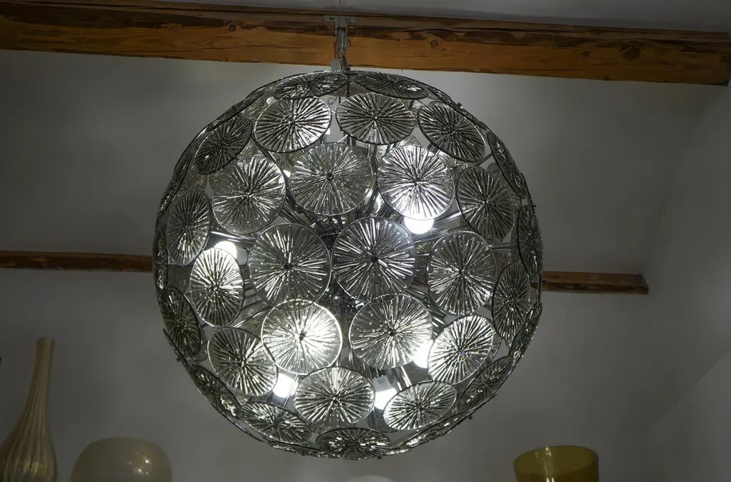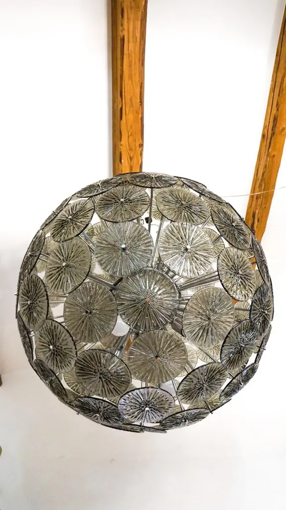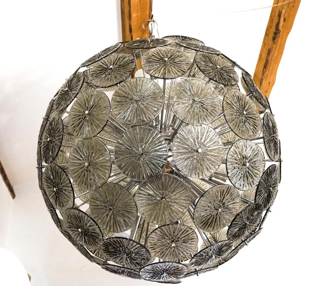 Mid-Century Modern Grey Murano Glass Dischi Chandelier By Alberto Donà, 1990s