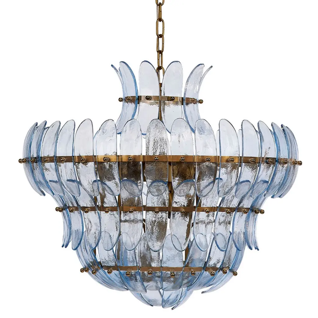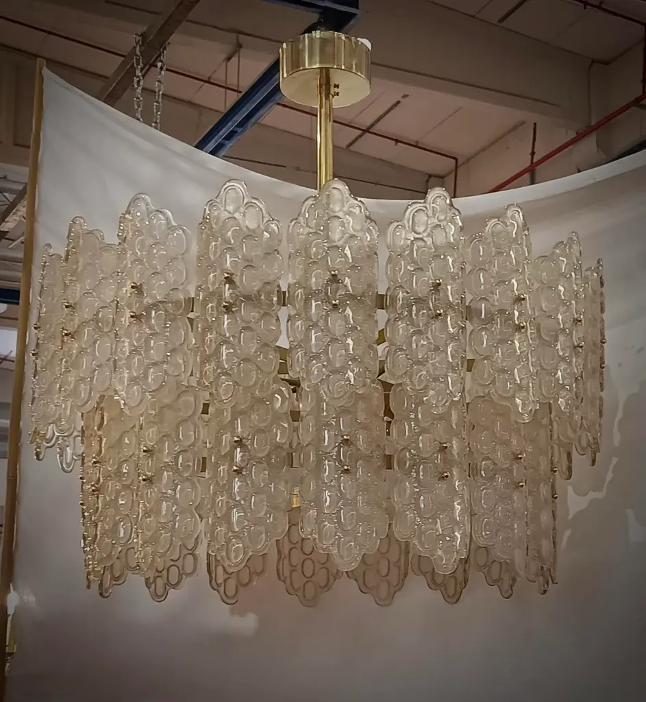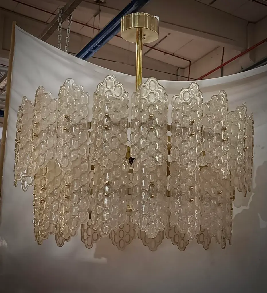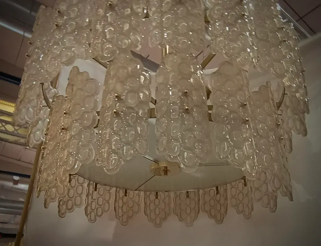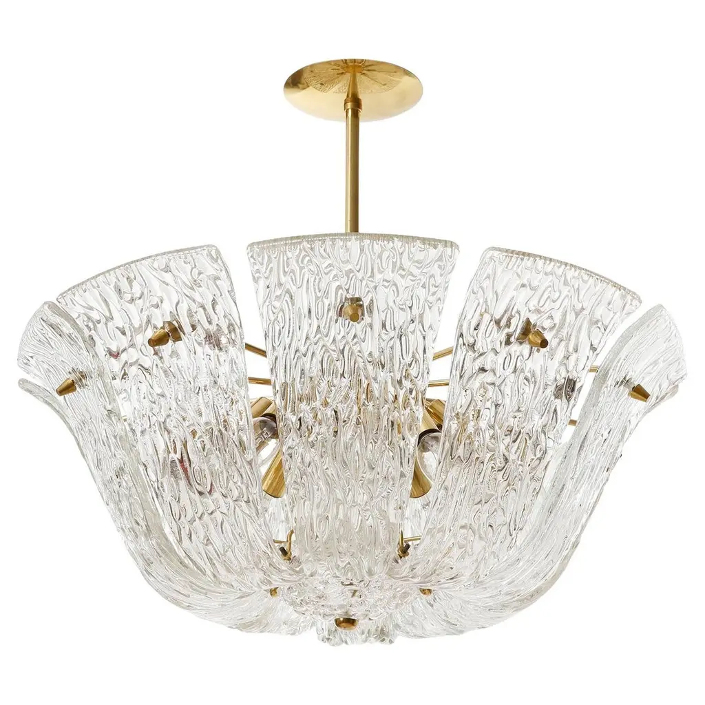 Mid-Century Murano Glass And Brass Chandelier, 2000s