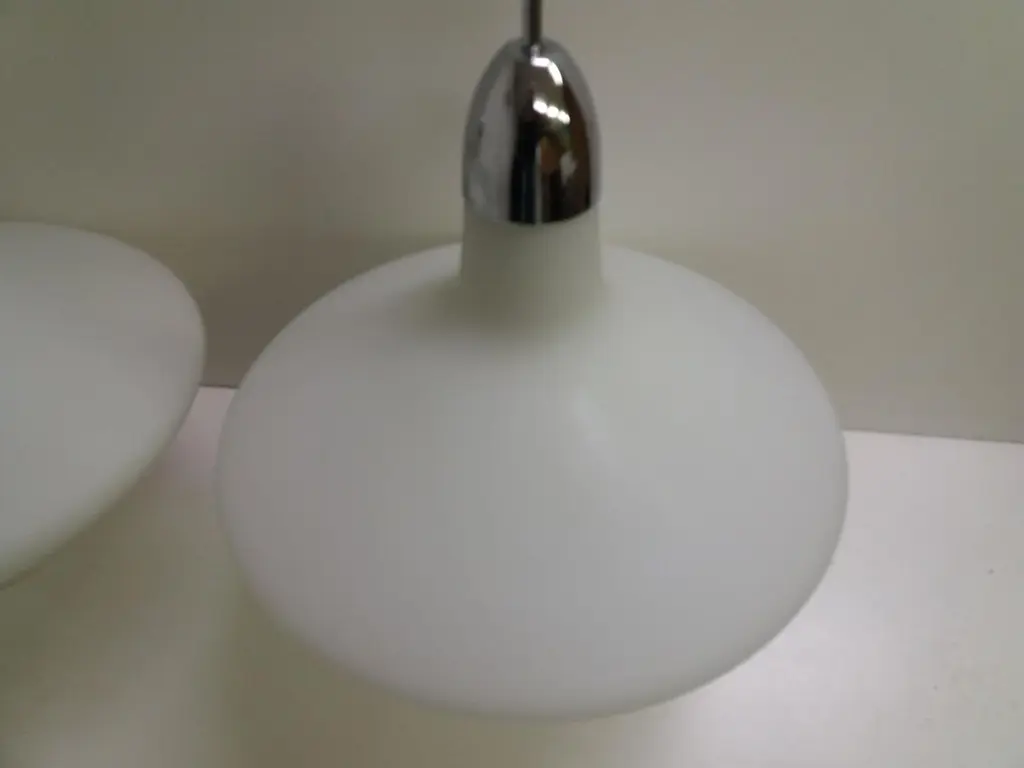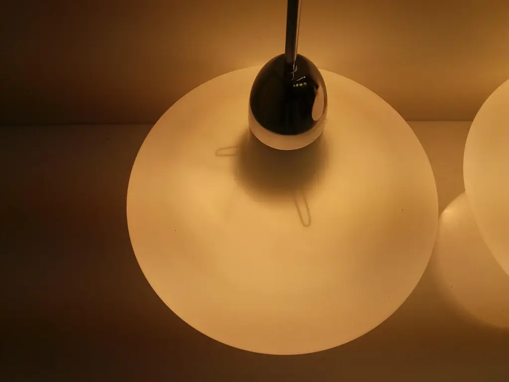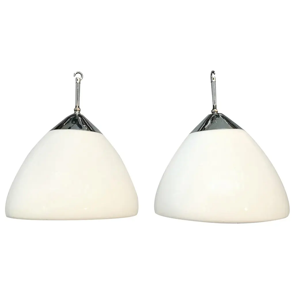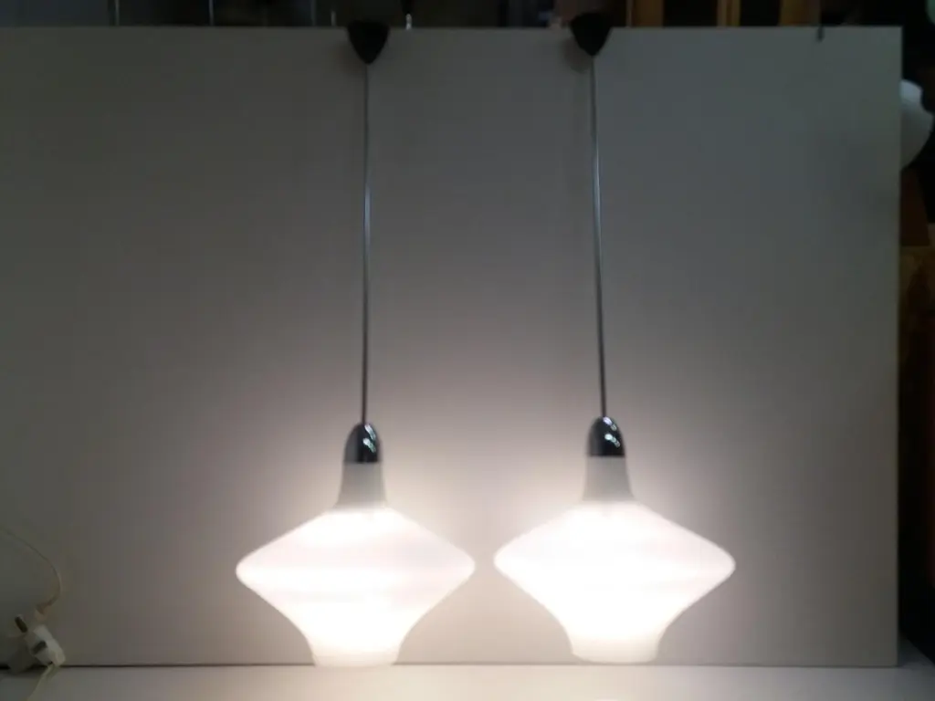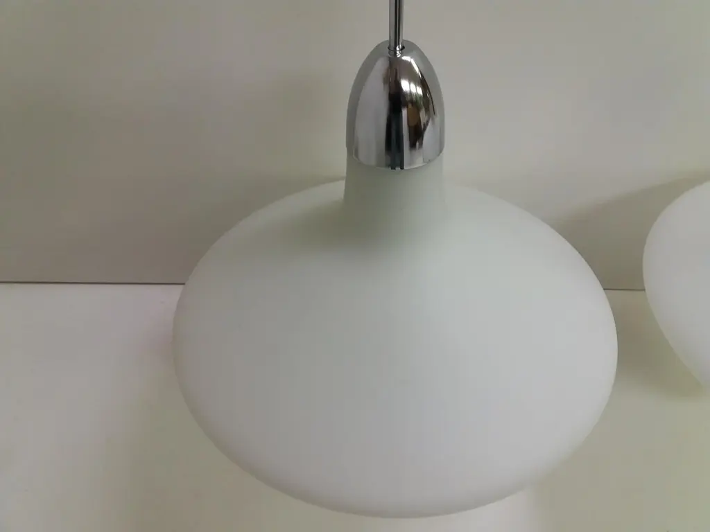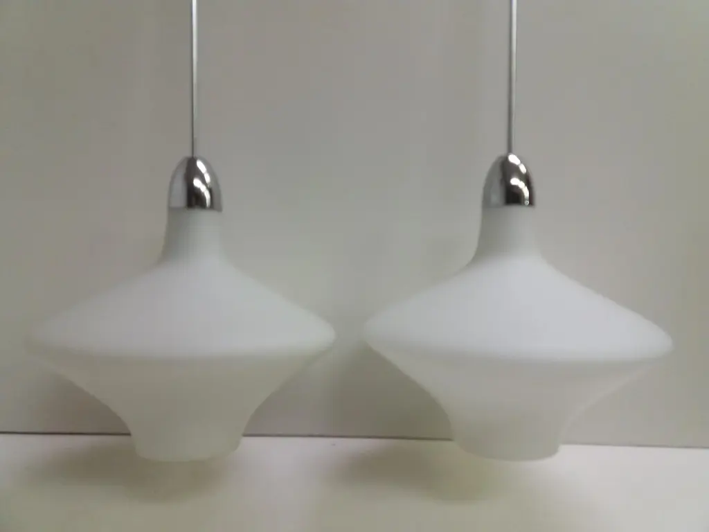 - Made in Czechoslovakia- Made of chrome, milk glass- Re-polished- Fully functional- New cabling- Good, original condition.
