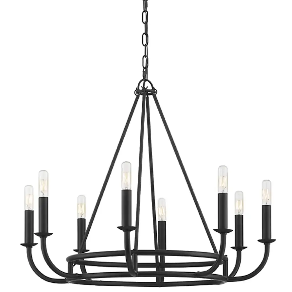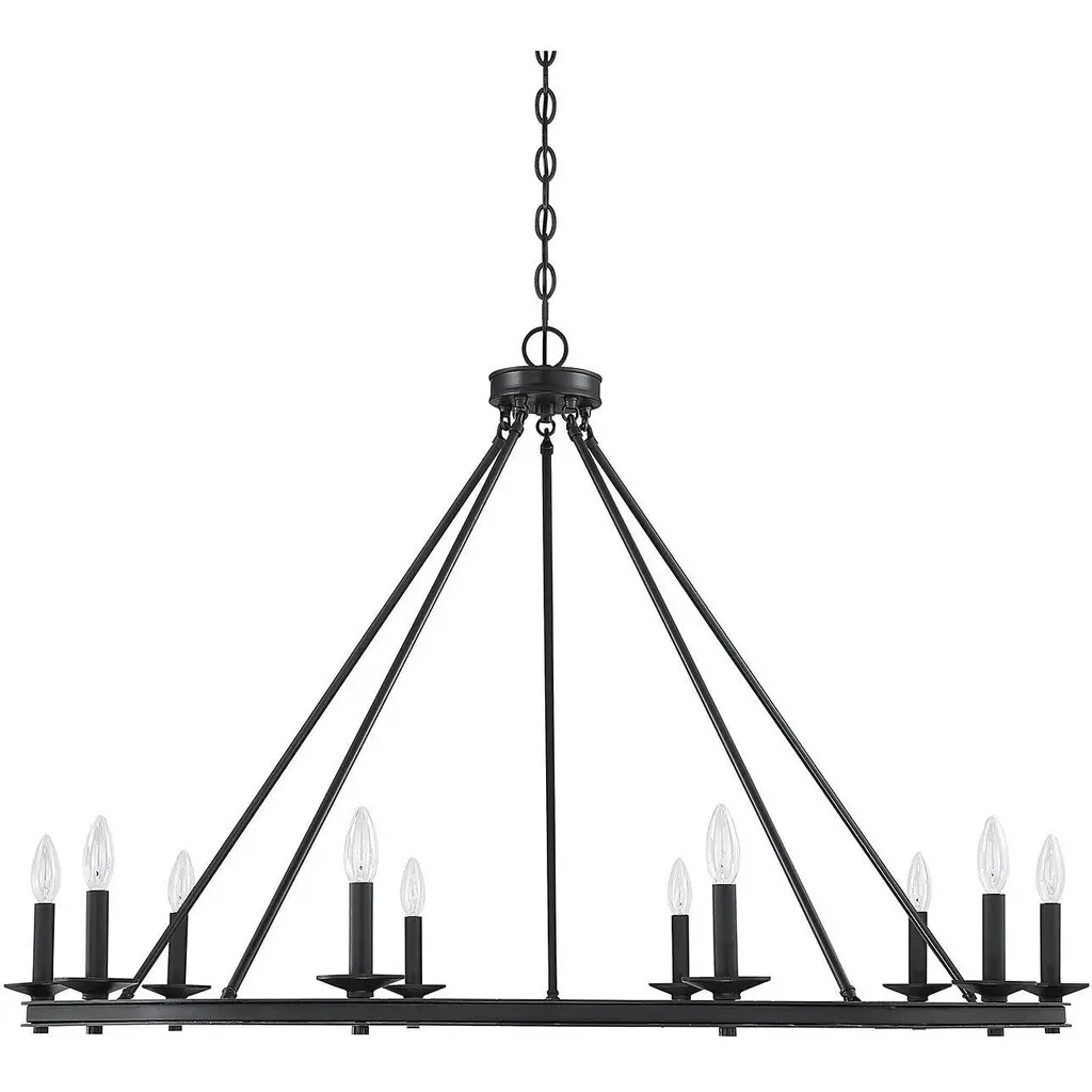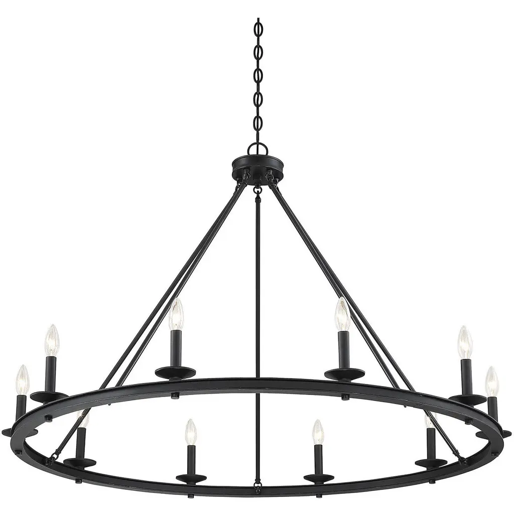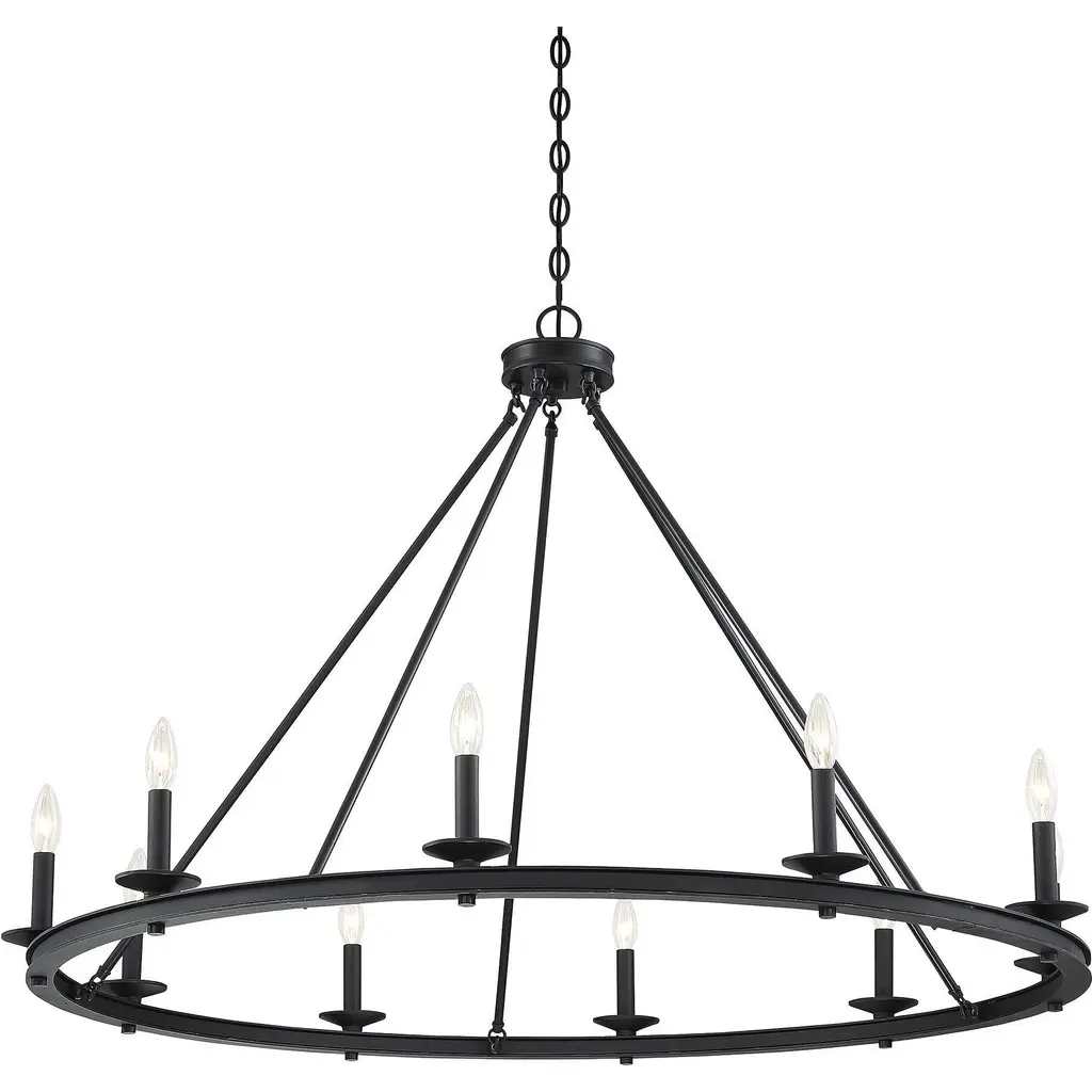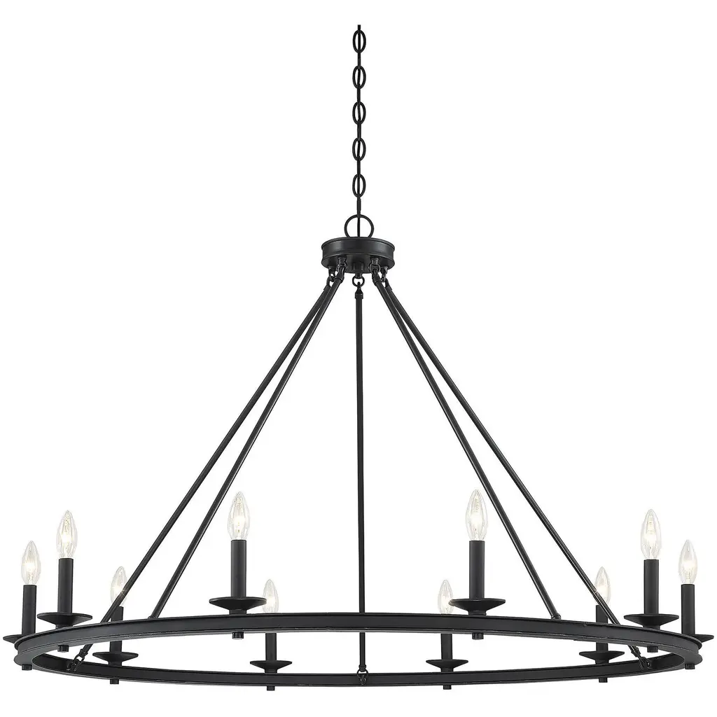 Get casual modern farmhouse flair with this Savoy House Middleton 10-light chandelier. It flaunts a stylish open hoop design and a versatile matte black finish. Chandeliers can be used in a wide variety of spaces, including but certainly not limited to dining rooms, living rooms, great rooms, bedrooms, kitchens, foyers, offices, closets and even bathrooms Because this chandelier is chain-hung, you can use as much or as little chain as you need to fit your specific hanging height needs, and it can be used on a sloped ceiling. Since the bulbs are exposed, try using stylized bulbs (not included) like tubular shape or Edison style for a different look The matte black finish goes with anything, so you can match it with black hardware or mix it with hardware in other finishes. The airy look of the Middleton is a great fit for farmhouse style, modern farmhouse style, transitional style and more. When you choose a Savoy House lighting fixture, you can be certain you've selected a piece that will withstand the test of time.