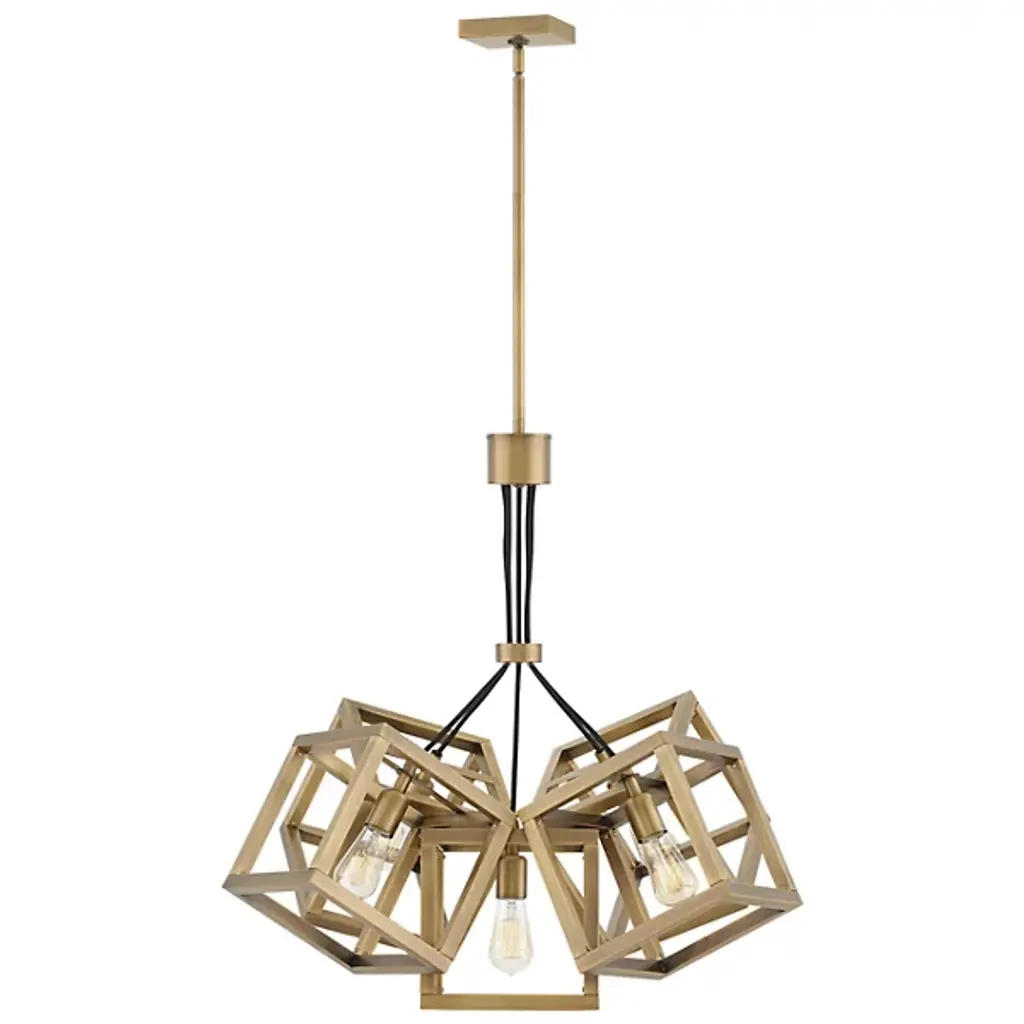 The Mies LED Chandelier by Modern Forms is a stylish, modern chandelier inspired by the Bauhaus movement. Crafted with aluminum in an aged brass finish, this sophisticated piece casts soft, radiant light that works perfectly in the bedroom, dining room, or master bath. Features