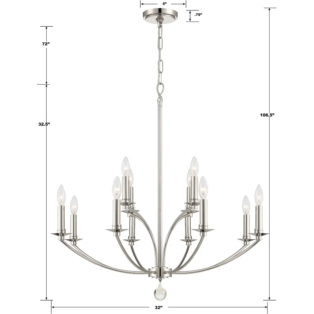 Mila 12 Light 32 Inch Polished Nickel Chandelier Ceiling Light