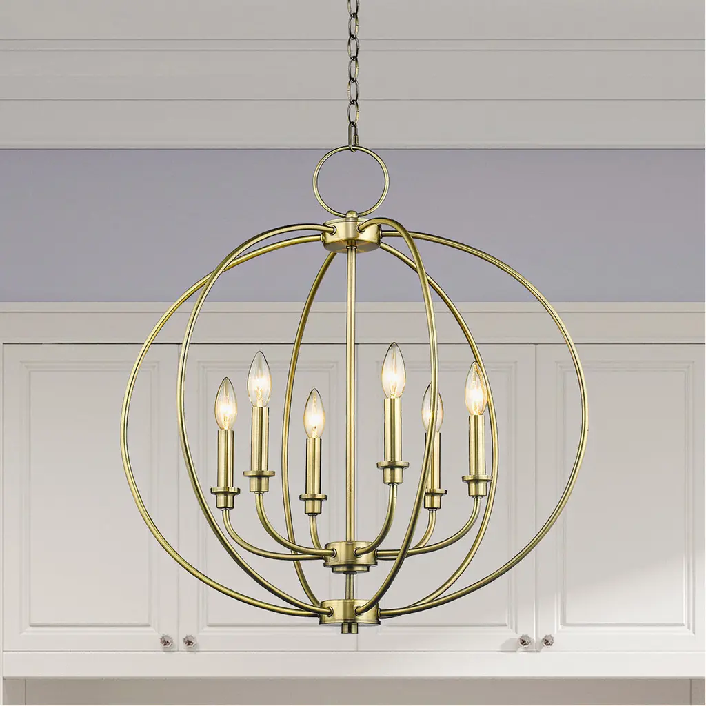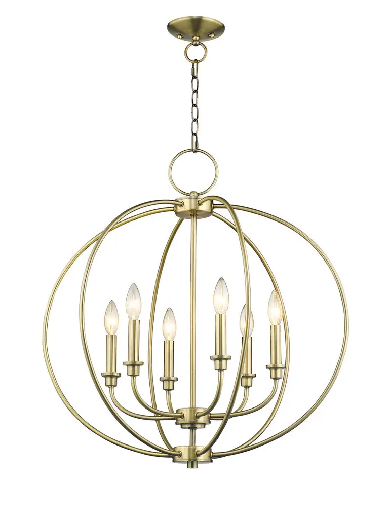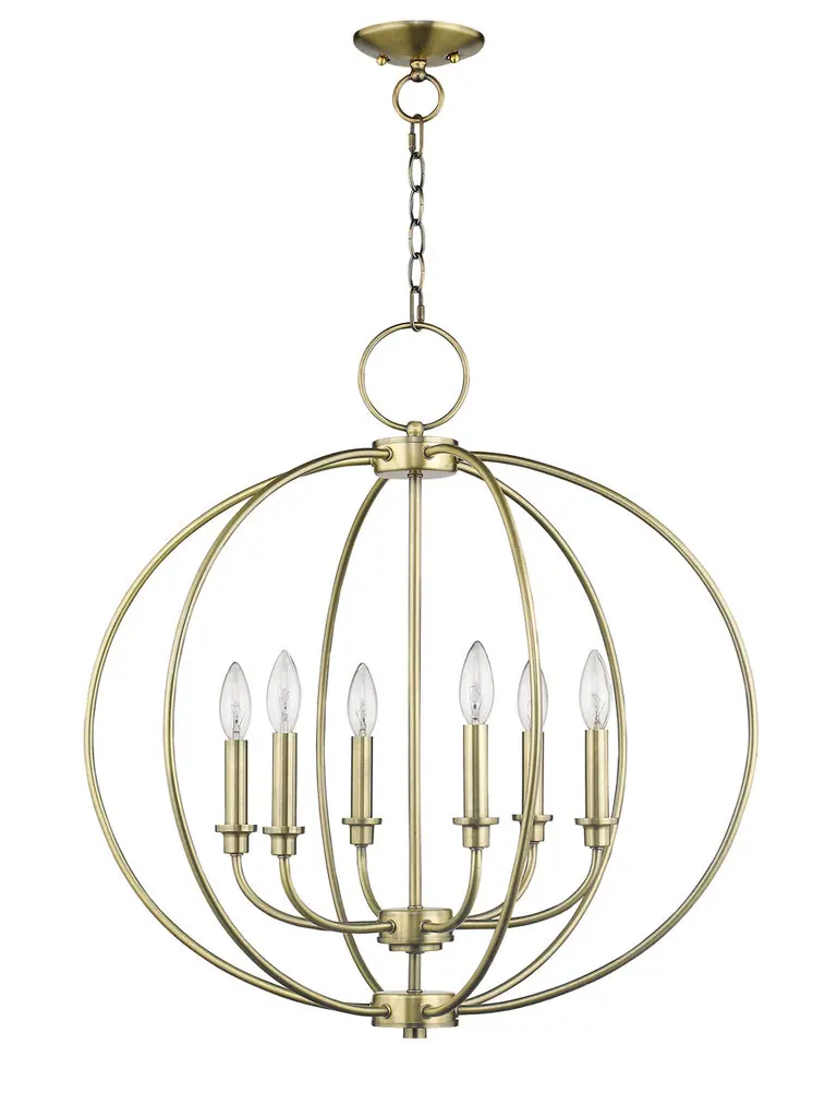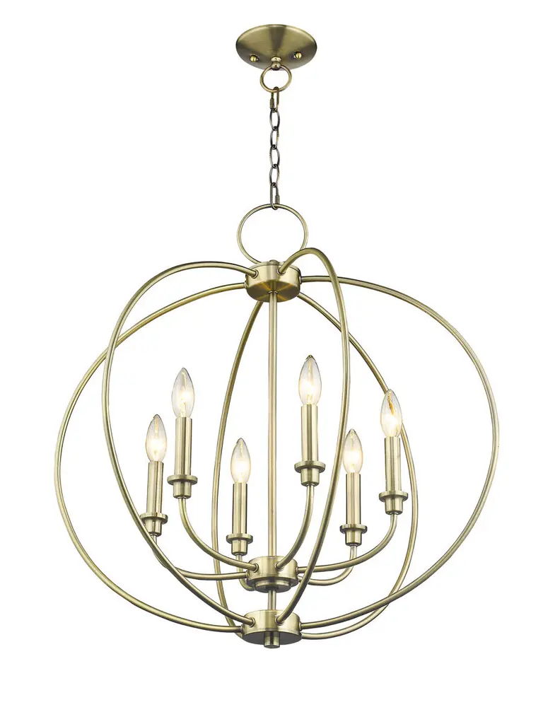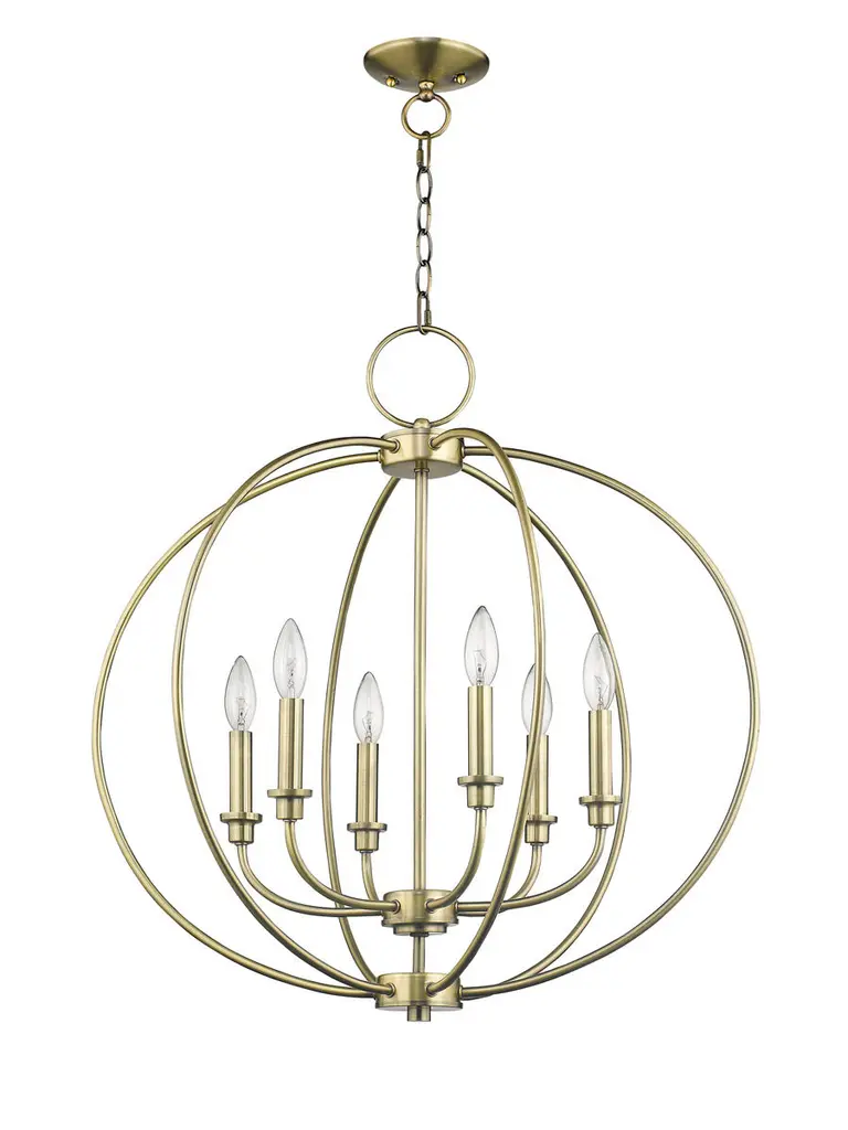 Milania 6 Light 25 Inch Antique Brass Chandelier Ceiling Light