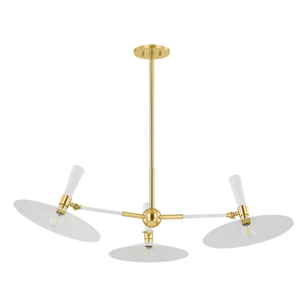 The Milena Chandelier from Mitzi draws inspiration from orbiting satellites, infusing spaces with mid-century flair. Its unexpected proportions transform this fixture from background lighting into a striking focal point. Oversized reflectors serve dual roles, amplifying light while adding a futuristic touch. The pivoting shades allow for precise customization, directing illumination exactly where needed. Its unique blend of style and functionality creates a statement piece that lights up a room and elevates its aesthetic, bringing a touch of space-age sophistication to any interior.