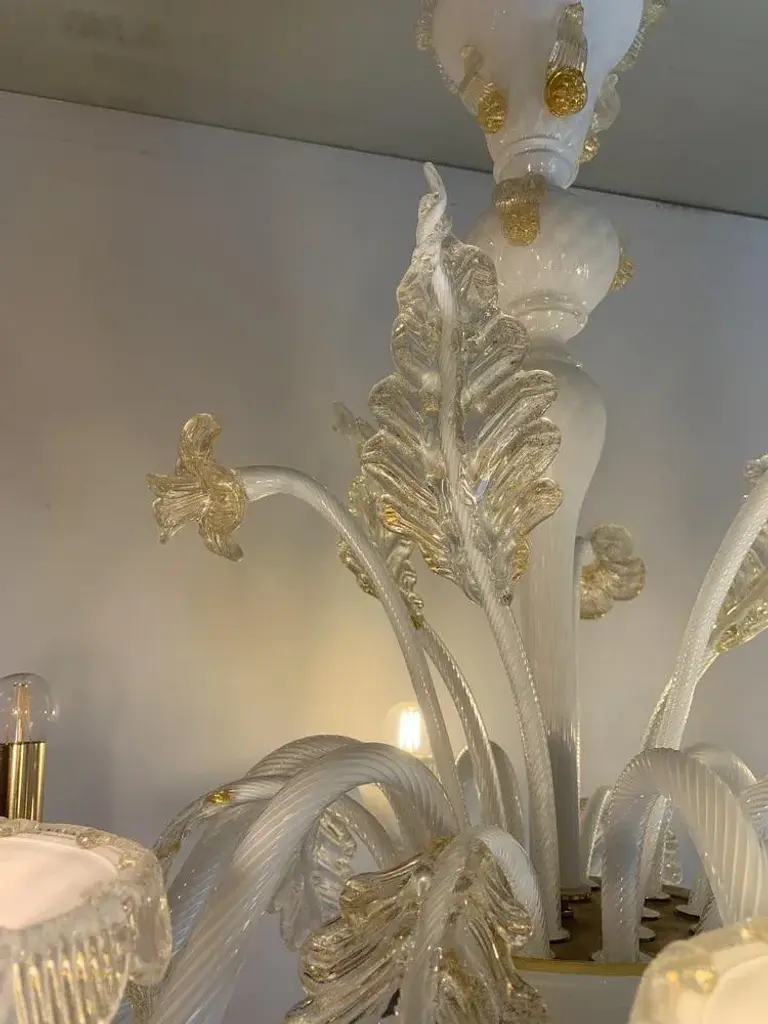 Milky And Gold Murano Glass Chandelier With Flowers And Leaves From Simoeng