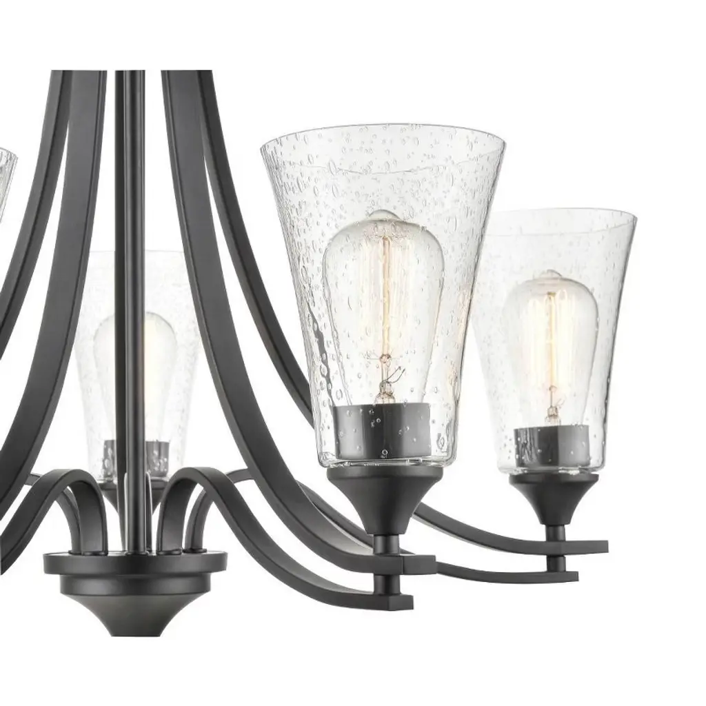 Collection: Natalie, Finish Color: Matte Black, Width: 27.75", Height: 25.5", Chain Length: 60", Number Of Bulbs: 5, Wattage: 100 Watts, Moisture Rating: Dry Rated, Desc: Whether you want to make a simple, sleek or a bold design statement, this fixture is a versatile way to brighten any room in the home. It is also a great lighting solution and provides stylish and ambient lighting. Light bulbs must be purchased separately. Place this fixture to the side of your kitchen, bathroom, bedroom, foyer or any room to accent your decor. Compatible with standard wall dimmer 1 year limited manufacture's warranty This item is UL listed Meets CSA standards This item is rated for dry location. Professional installation recommended. Warranty: 1 Year LimitedShade Included: Yes. Chain Length: 60.00. ,