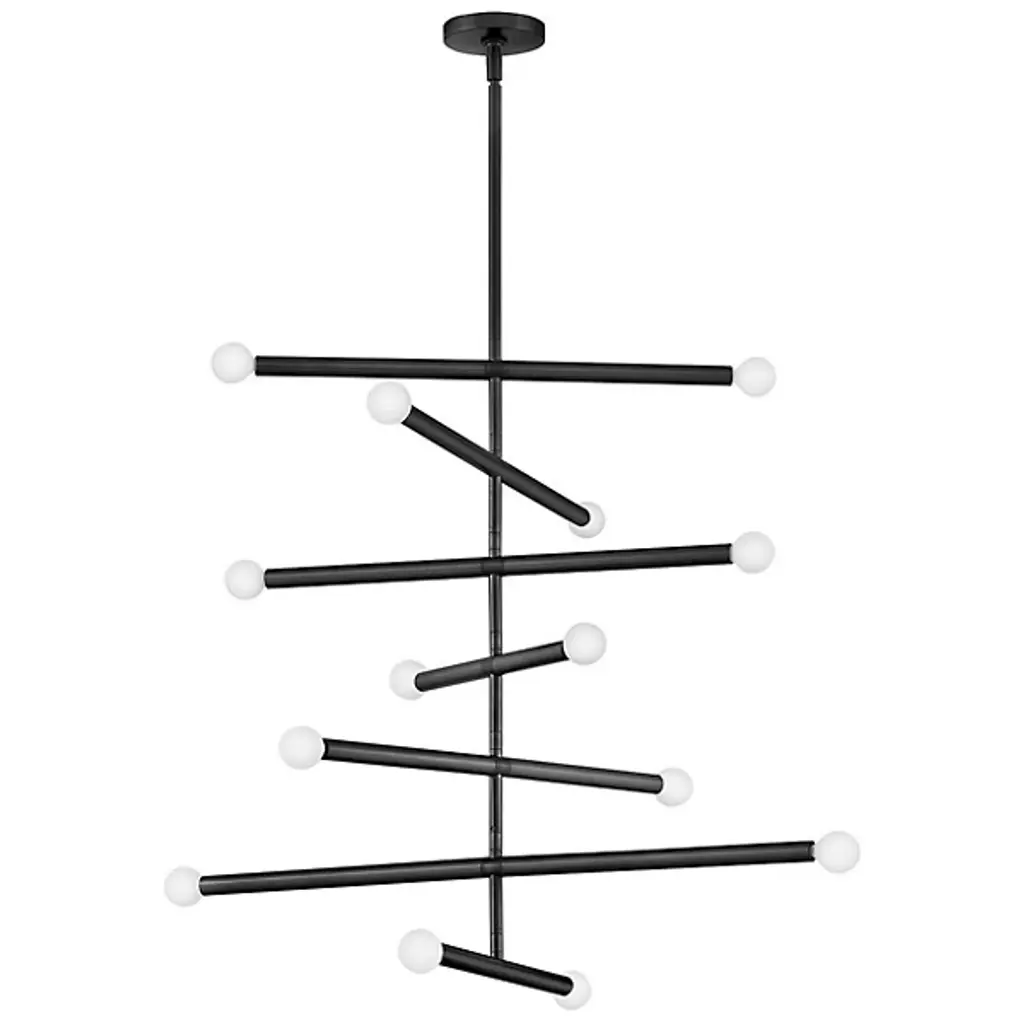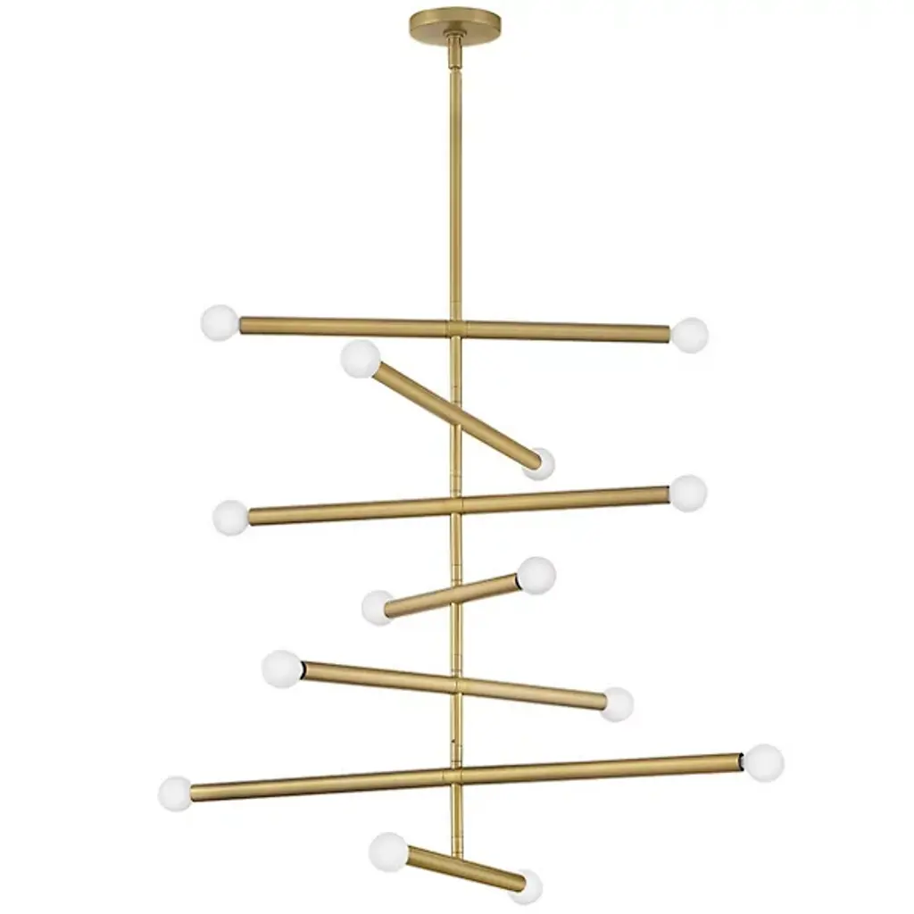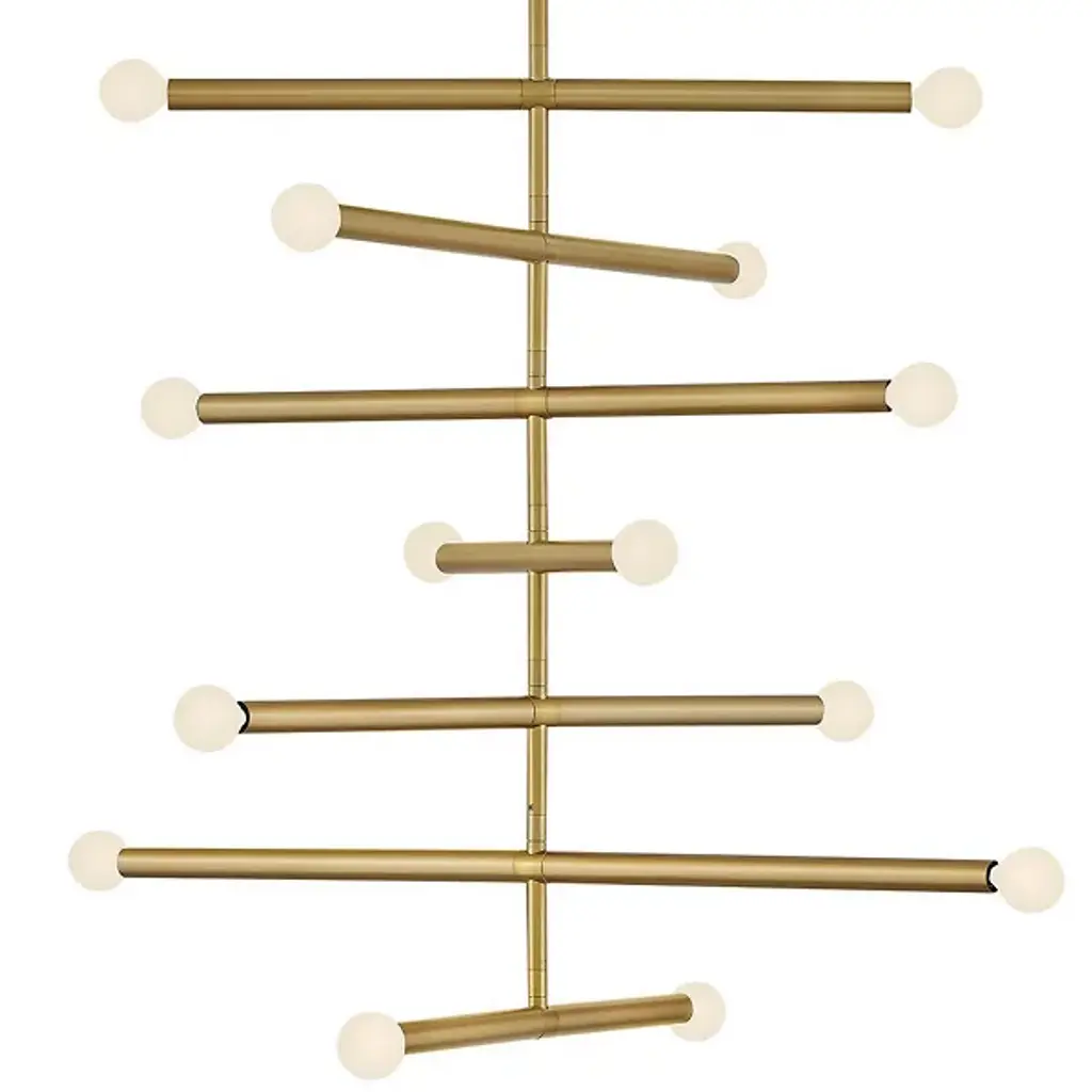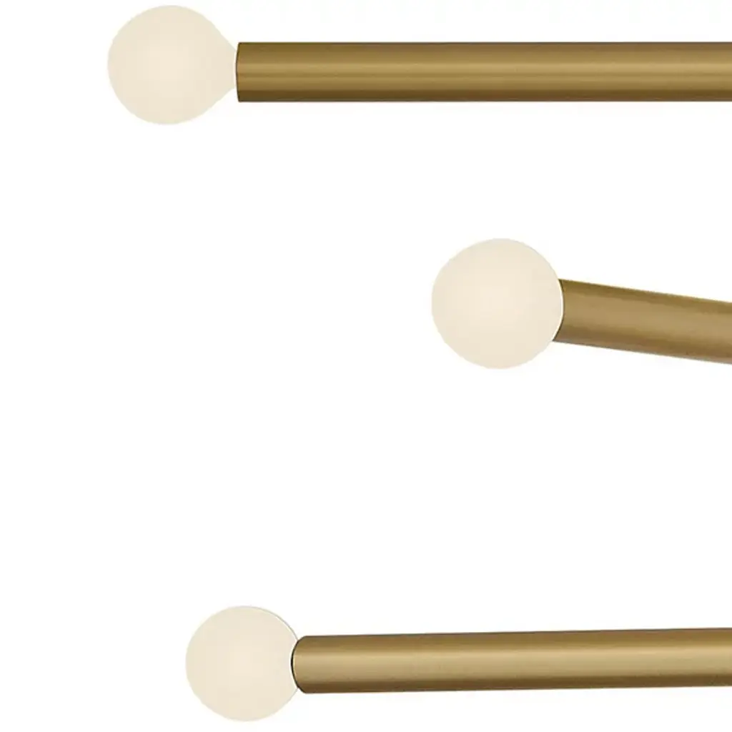 The Millie Chandelier from Lark tells a linear love story with elongated cylindrical rods that extend outward, creating a sleek statement that demands attention. Drawing from its iconic midcentury modern roots, this design establishes style credibility. To enhance Millie's chic aesthetic, we recommend pairing it with G16.5 bulbs, completing its sophisticated look and adding a touch of timeless elegance to any space. It is the perfect choice for those seeking to infuse their décor with modern flair and classic allure