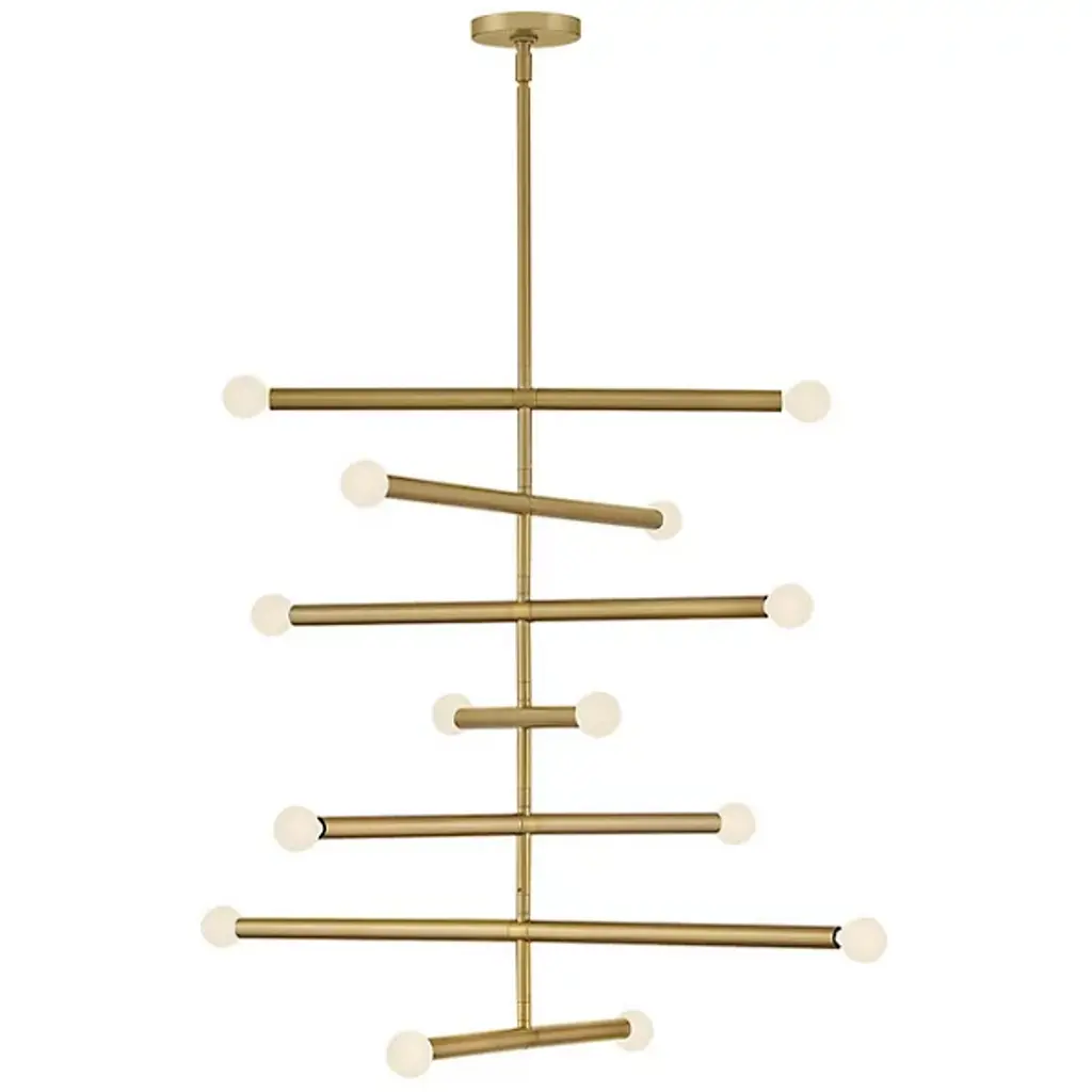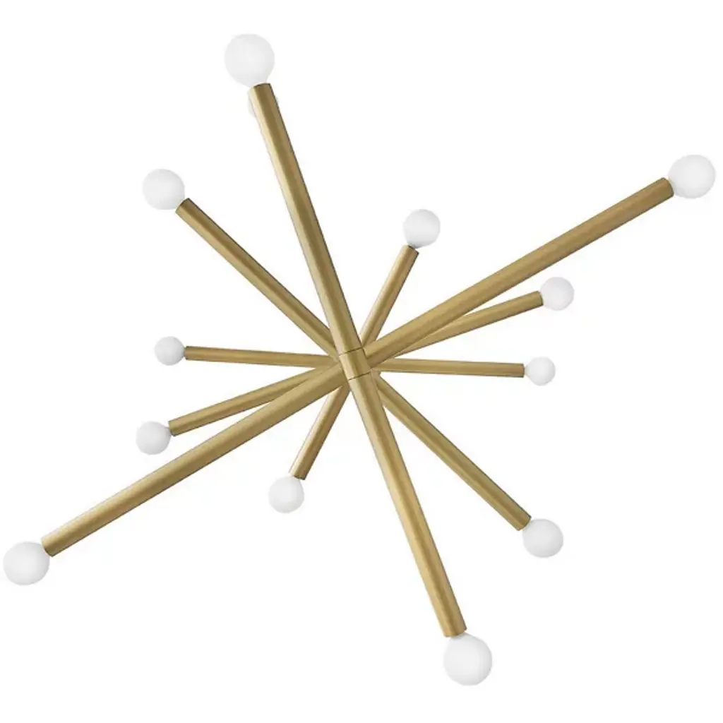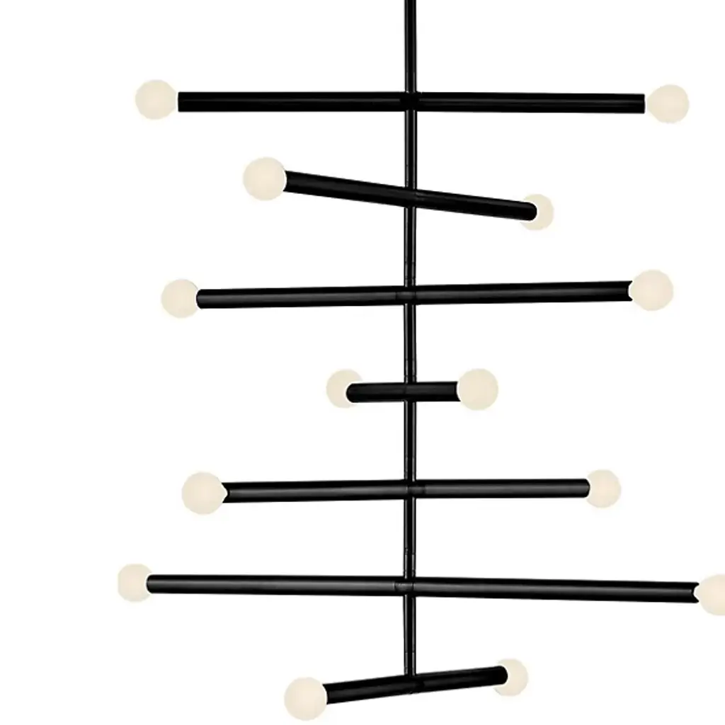 The Millie Chandelier from Lark tells a linear love story with elongated cylindrical rods that extend outward, creating a sleek statement that demands attention. Drawing from its iconic midcentury modern roots, this design establishes style credibility. To enhance Millie's chic aesthetic, we recommend pairing it with G16.5 bulbs, completing its sophisticated look and adding a touch of timeless elegance to any space. It is the perfect choice for those seeking to infuse their décor with modern flair and classic allure