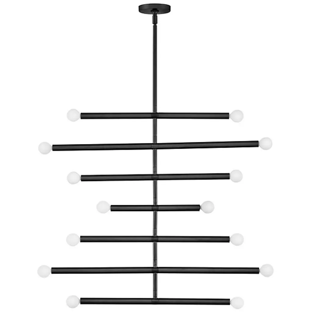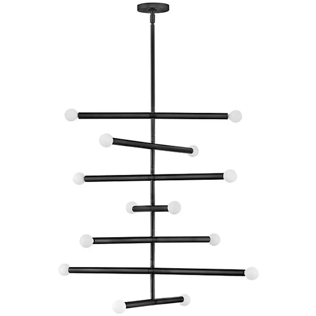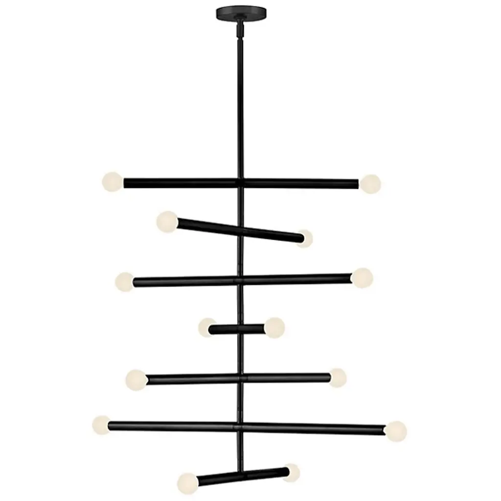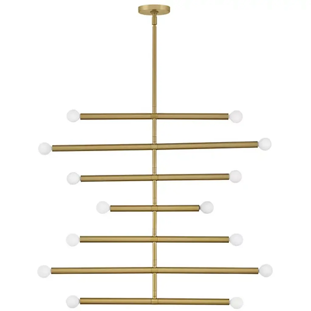 The Millie Chandelier from Lark tells a linear love story with elongated cylindrical rods that extend outward, creating a sleek statement that demands attention. Drawing from its iconic midcentury modern roots, this design establishes style credibility. To enhance Millie's chic aesthetic, we recommend pairing it with G16.5 bulbs, completing its sophisticated look and adding a touch of timeless elegance to any space. It is the perfect choice for those seeking to infuse their décor with modern flair and classic allure
