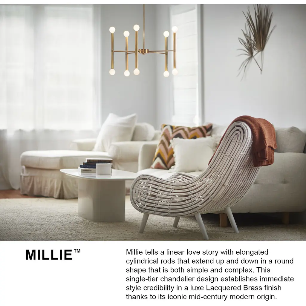 Millie tells a linear love story with elongated cylindrical rods extending outwards, creating a sleek statement that commands attention. This design establishes immediate style credibility thanks to its iconic mid-century modern origin, ensuring visual intrigue in either Black or Lacquered Brass finishes. To complement Millie’s chic style, we recommend G16.5 bulbs.
