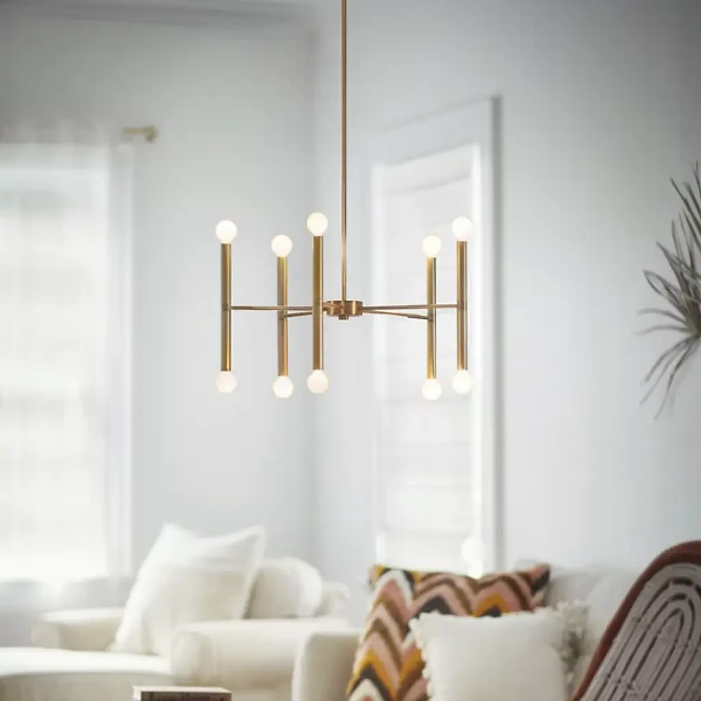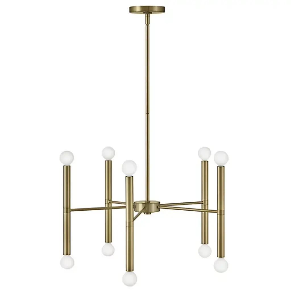 Keep your rooms open and elegant with the outstretched sequence of lamping produced by the Millie Multi-Tier Chandelier from Lark. This chandelier’s bold finish and beautiful geometry underscore its mid-century aesthetic. It drops down with a slender down rod that pleases over a dining room, foyer, or living space. A radiating set of arms direct the lamping towards every wall in the room. Tubular lamp holders at the ends hold a pair of bulbs for upsurging and down spreading light. This spacious light accentuates the chandelier’s sharp linear silhouette.