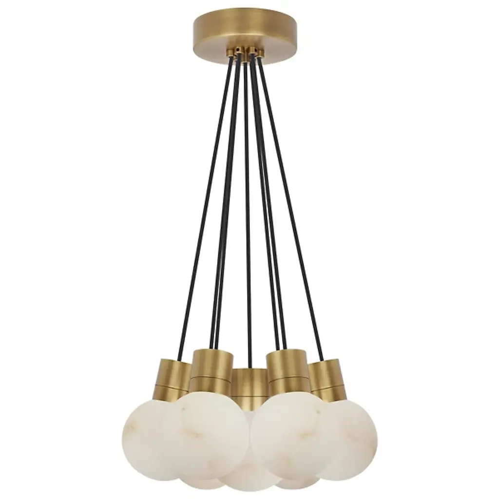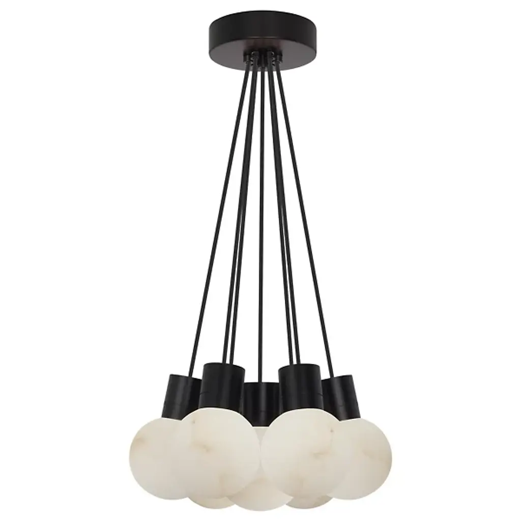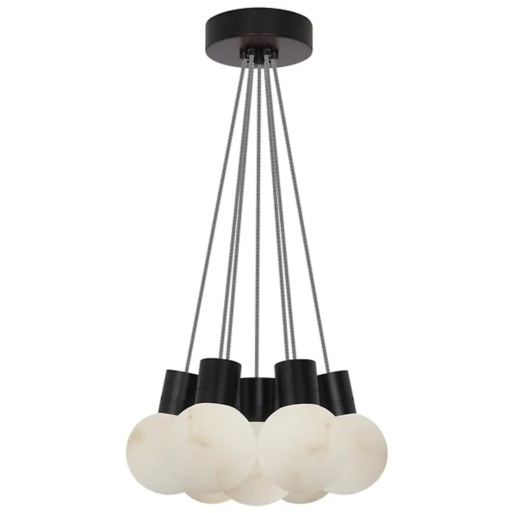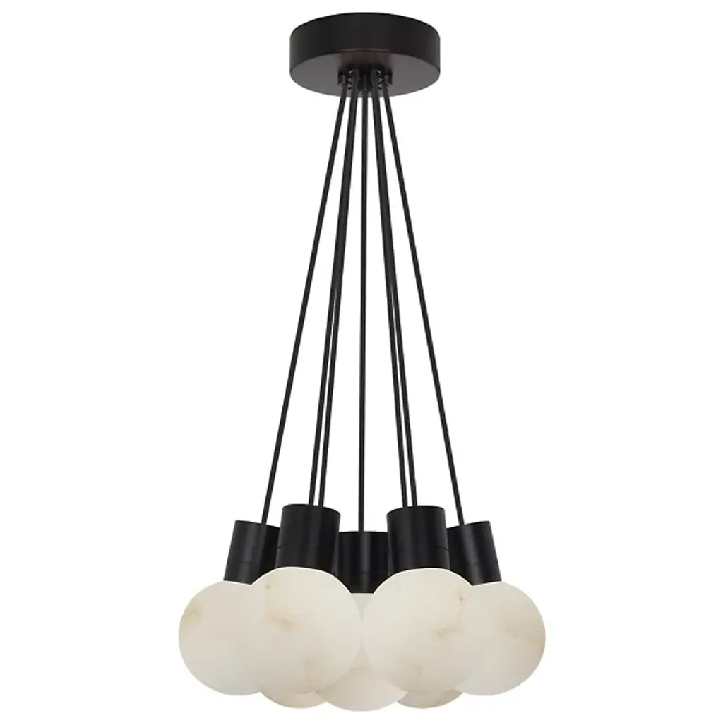 The Mina Alabaster LED Chandelier from Visual Comfort Modern showcases a stunning sphere of pure optic crystal, laser-etched and illuminated by a powerful downward-firing LED. Despite its compact size, it provides ample task lighting. Designed by Sean Lavin, it offers customizable cord colors and trendy finishes, along with fully dimmable LED options. With its contemporary yet raw aesthetic, this pendant suits various residential and commercial settings, blending functionality with elegant design.