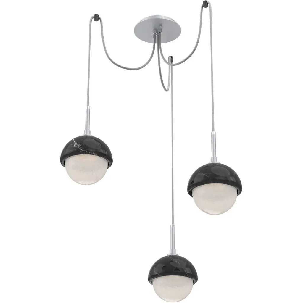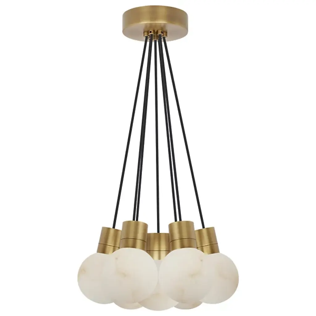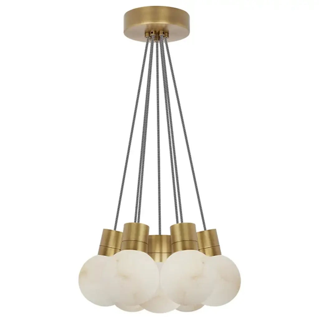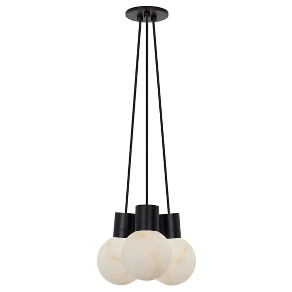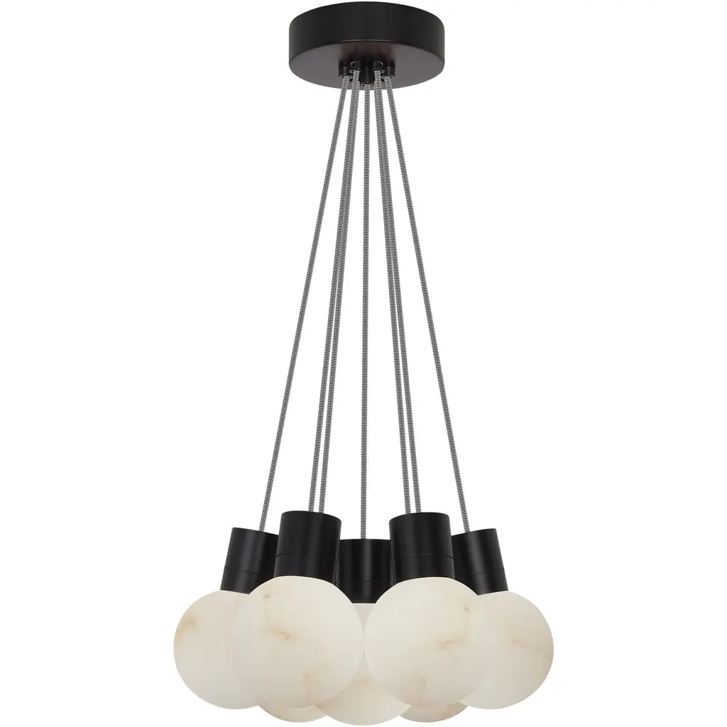 The Mina Alabaster LED Chandelier from Visual Comfort Modern showcases a stunning sphere of pure optic crystal, laser-etched and illuminated by a powerful downward-firing LED. Despite its compact size, it provides ample task lighting. Designed by Sean Lavin, it offers customizable cord colors and trendy finishes, along with fully dimmable LED options. With its contemporary yet raw aesthetic, this pendant suits various residential and commercial settings, blending functionality with elegant design.