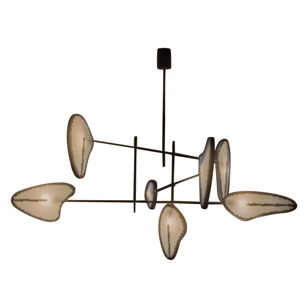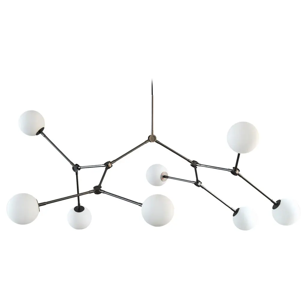 Mini Drop chandelier brass by 101 CopenhagenDesigned by Kristian Sofus Hansen & Tommy Hyldahl.Dimensions: H95 x L100 x W95 CMMaterials: Brass; Lampshade & Ceiling cup: 100% Iron, with the plated brass finish; Pipes & attachment parts are made of 100% oxidized brass and brushed afterwords.: Brass Oxidized; Cable: Fabric covered cable / BlackThis product is not wired for USASuitable for rooms with a height of 230-320 CM.Does not comply with US Standards.While The Drop Chandelier collection honors modernist lamp designs of the 1950s, it also celebrates an experimental, innovative approach with its gently curving shades and 14 flexible and functional adjustable arms - creating countless options, variations, and angles. The beautifully crafted oxidized and plated, metal body is subsequently hand brushed and the lamp brightens up the room elegantly with a warm, pleasant light. 101 Copenhagen is a Danish design brand founded in 2017. With a vision to honor exquisite quality and craftsmanship, the collection encompasses furniture, lighting and accessories in a timeless, yet modern design. With a true passion for materials and refined textures, organic shapes and colours, 101 Copenhagen presents the epitome of classics and must-have novelties for Scandinavian and international interior connoisseurs alike.