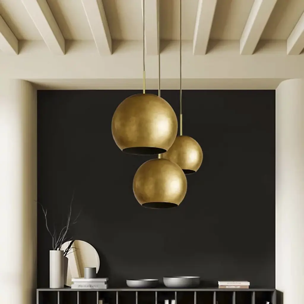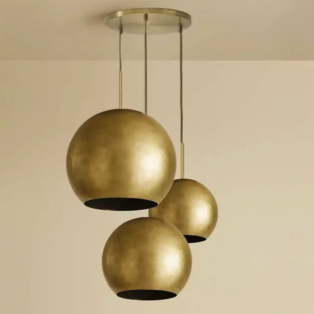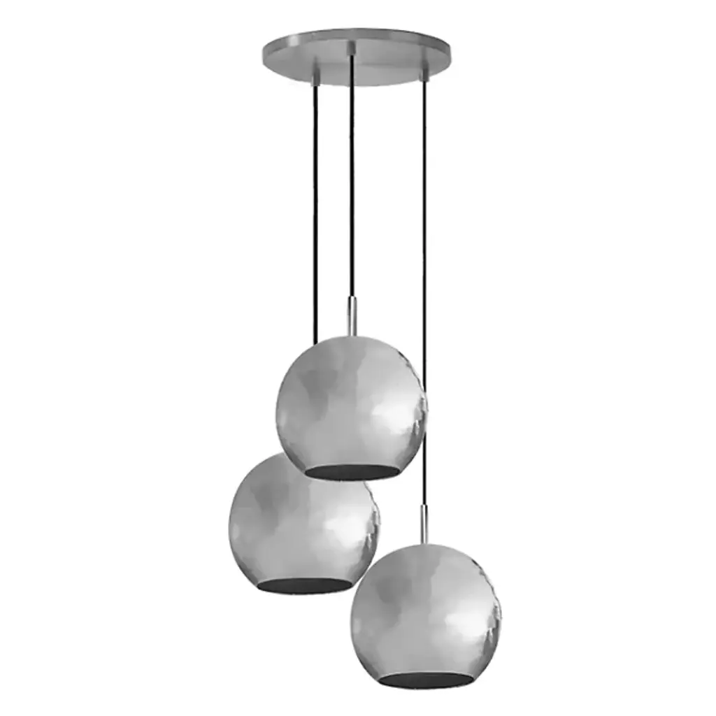 The Mishal Multi-Globe Chandelier from Dounia Home offers an elegant artisanal accent to inside ceilings. A slim circle canopy suspends the fixture, sending slim cables down to strong lamps inside spherical shades. Each spherical shade is hand-hammered in Morocco, showing off tiny imperfections and signature character. The shades are layered at different heights and encompass the strong lamping, with open bases that dispense columns of focused downlight accented by radiant reflections.