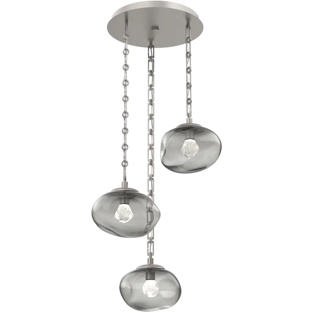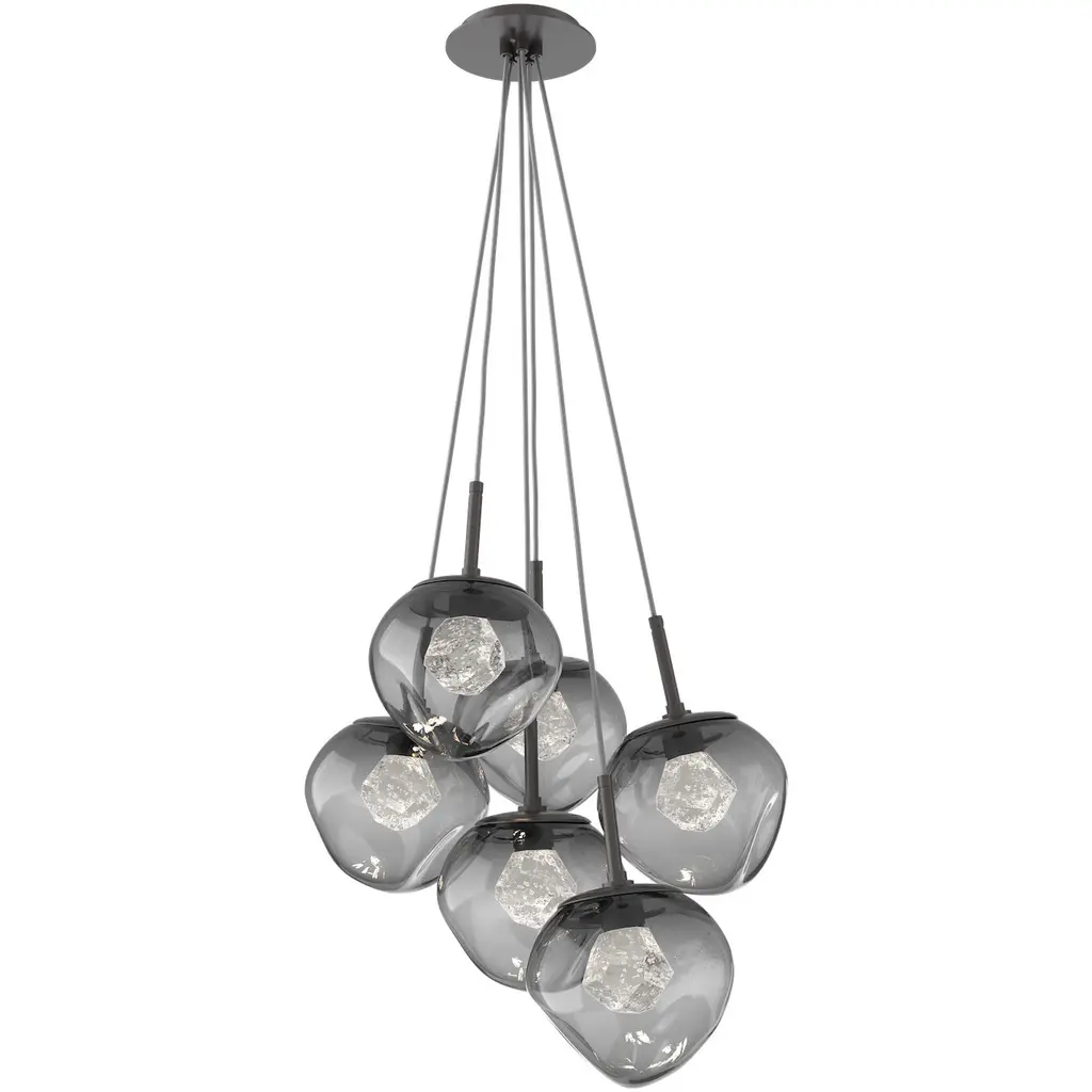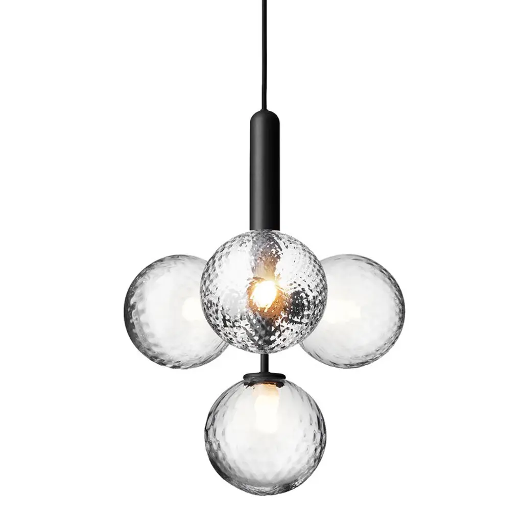 The Mishal Multi-Globe Chandelier from Dounia Home offers an elegant artisanal accent to inside ceilings. A slim circle canopy suspends the fixture, sending slim cables down to strong lamps inside spherical shades. Each spherical shade is hand-hammered in Morocco, showing off tiny imperfections and signature character. The shades are layered at different heights and encompass the strong lamping, with open bases that dispense columns of focused downlight accented by radiant reflections.