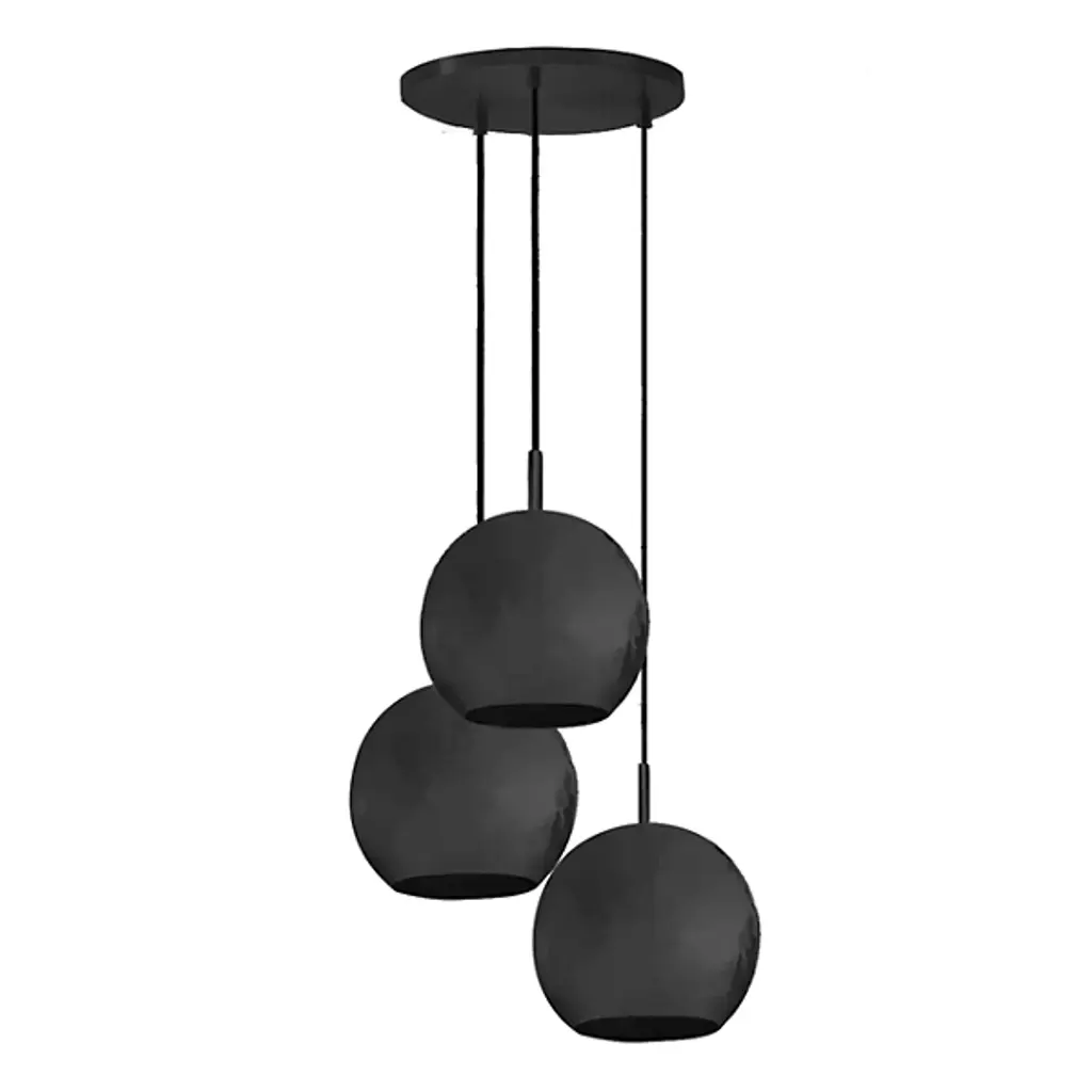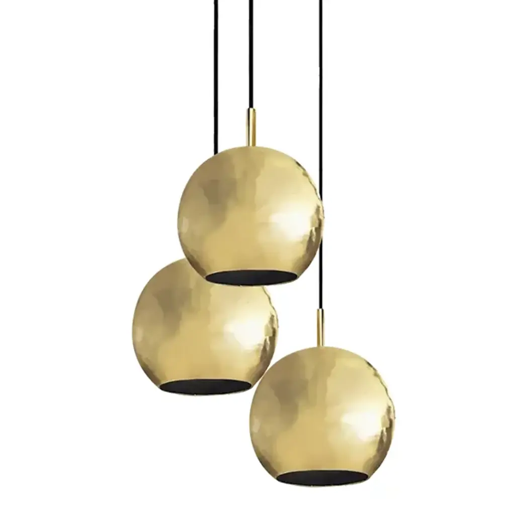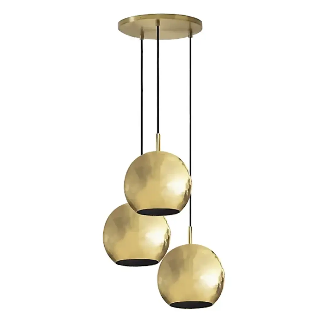 The Mishal Multi-Globe Chandelier from Dounia Home offers an elegant artisanal accent to inside ceilings. A slim circle canopy suspends the fixture, sending slim cables down to strong lamps inside spherical shades. Each spherical shade is hand-hammered in Morocco, showing off tiny imperfections and signature character. The shades are layered at different heights and encompass the strong lamping, with open bases that dispense columns of focused downlight accented by radiant reflections.