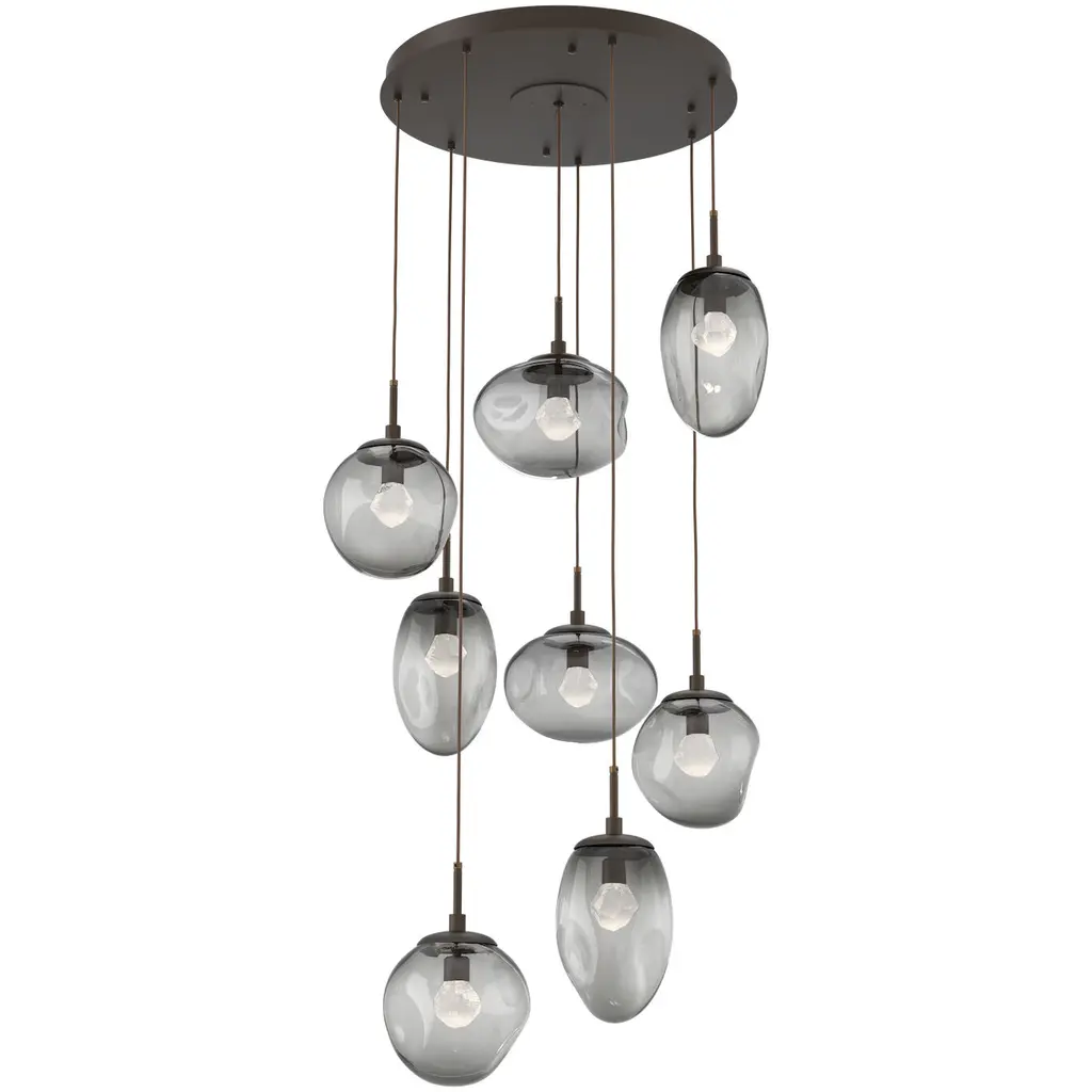 Misto 8 Light 30.6 Inch Gilded Brass Chandelier Ceiling Light In Misto Smoke, Round Multi-Port