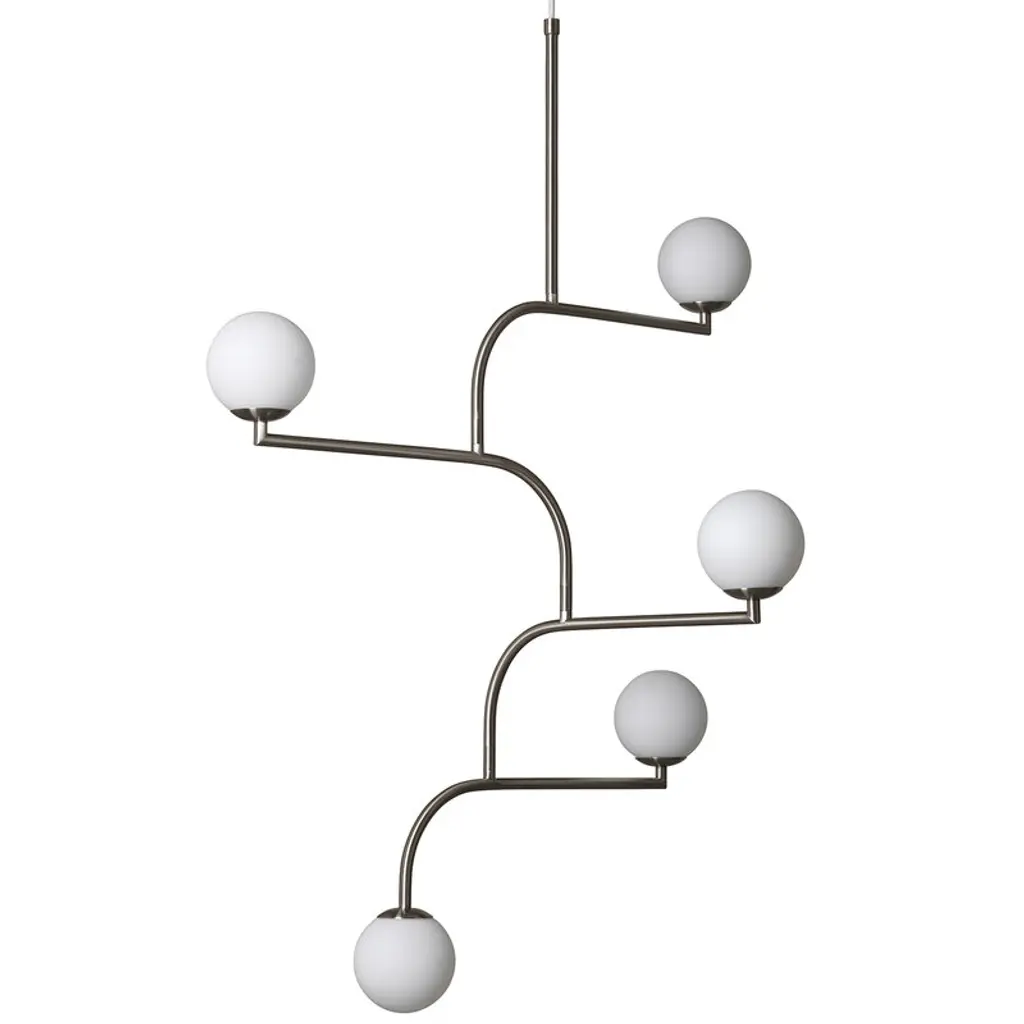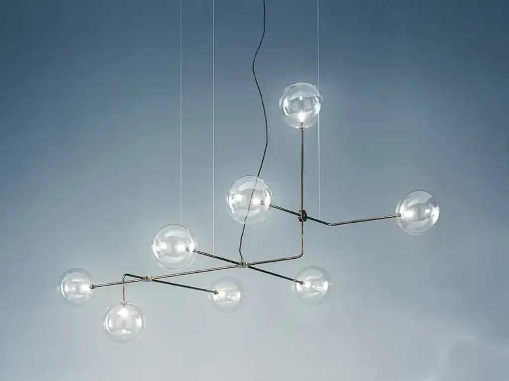 The Mobil Chandelier by Pholc makes a minimalistic focal point for the artistic home. Designed by Monika Mulder, this piece draws inspiration from the desire to create a fixture that looks great in a New York City loft. This piece subtly alludes to the look of classic city balconies and fire escapes, as well as the rounded lights found on the Brooklyn Bridge. Slender metal tubes branch out into a layered formation to hold white opal glass orbs containing the fixture’s light, moving freely like a hanging mobile in the air.