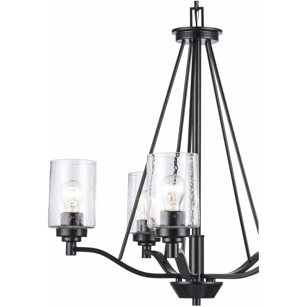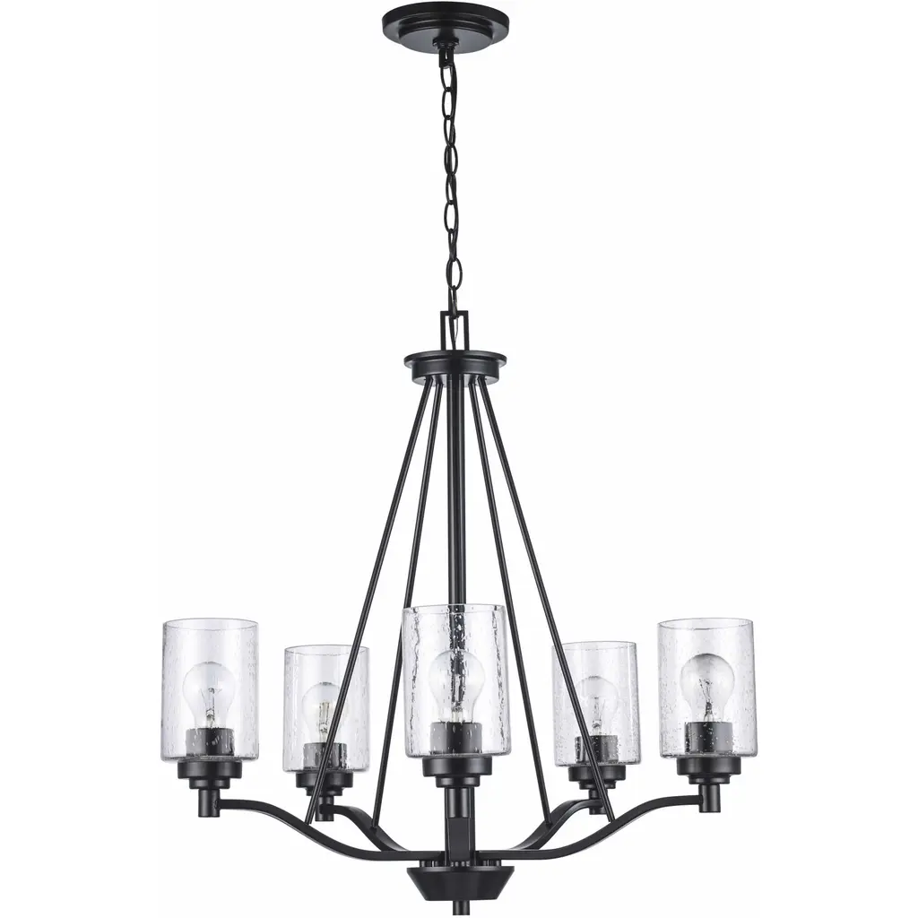 Our 5 – light, dimmable shaded chandelier is a striking design, ideal for creating a dramatic entrance to a foyer or adding sparkle and light to your dining area. The timeless but updated look will bring heightened elegance to the décor of any interior. With its beautiful clear seeded glass shades, this single tier chandelier makes a bold statement while providing functionality with light that shines in all directions. The aesthetic is easy, and blends with nearly any genre or existing light fixtures.