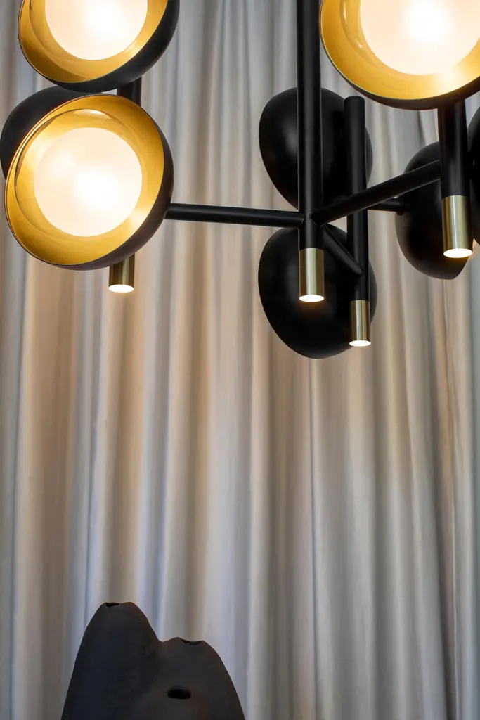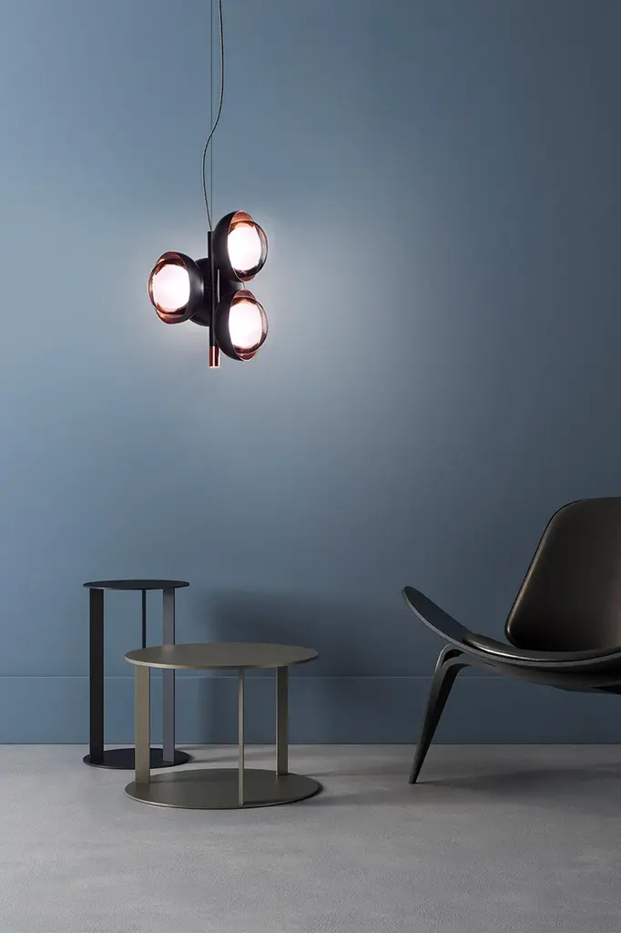 Chandelier muse 554.25 by Corrado Dotti x TOOYModel shown:Finish: Brushed brassColor: Clear glassCompliance bulb: G9 220/240V - 3W Compliant with USA electric systemPendant: 125 cm steel cable, electric cable length 150 cmCollection of neo-vintage metal lamps with a double-sided diffuser in borosilicate glass. The metal domes (one internal and the other one external) have the internal side with different colors or finishing: they can be painted or finished in polished brass and bright copper, thus to create different textural combinations. The hanging version are provided with a further G9 source located in the lower part of the lamp.A light to give warmth, a light to give attention, a light to get lost in one’s thoughts. Each reflection, a state of mind. Fascinated by the infinite facets of light, the TOOY brand offers lighting that gives value to the experience of living in spaces through a wide and versatile range of products capable of telling a story.