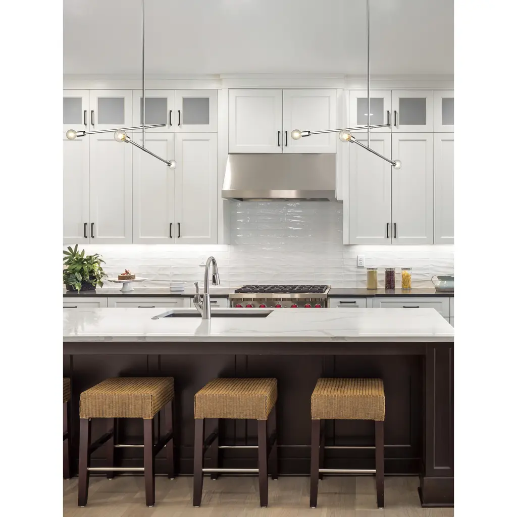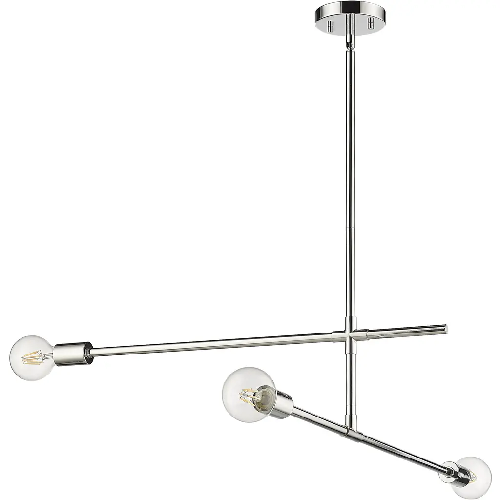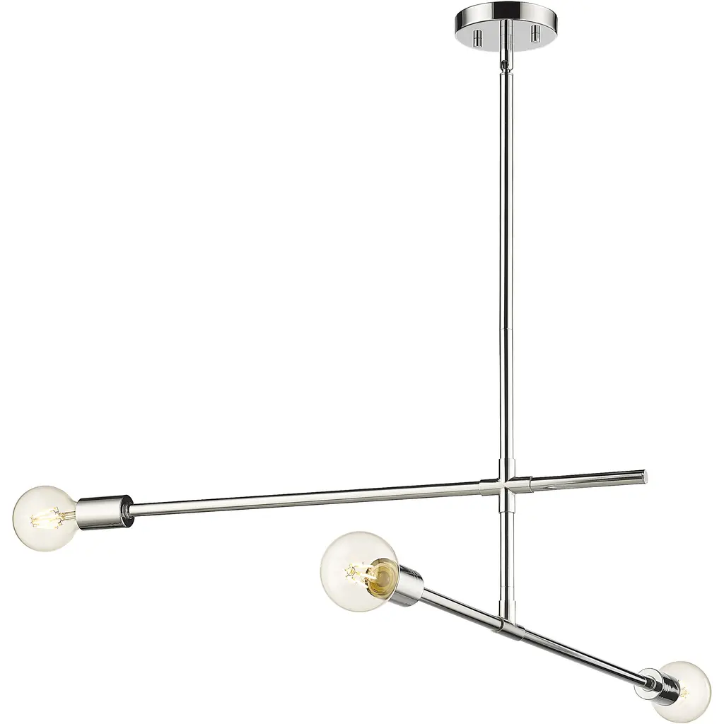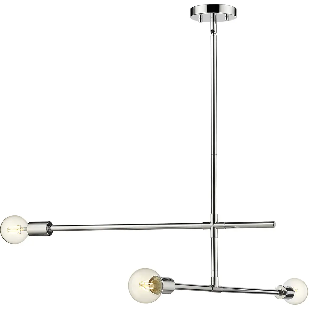 Toe the line on sleek modernist style with a fixture that becomes a primary element of custom décor. This three-light chandelier from the Modernist collection dazzles with a slightly asymmetrical linear design featuring parallel and perpendicular frames crafted of chrome finish steel. Choose stylish bulbs to customize a dining or living space, soaking up the striking contemporary character of this classic fixture.