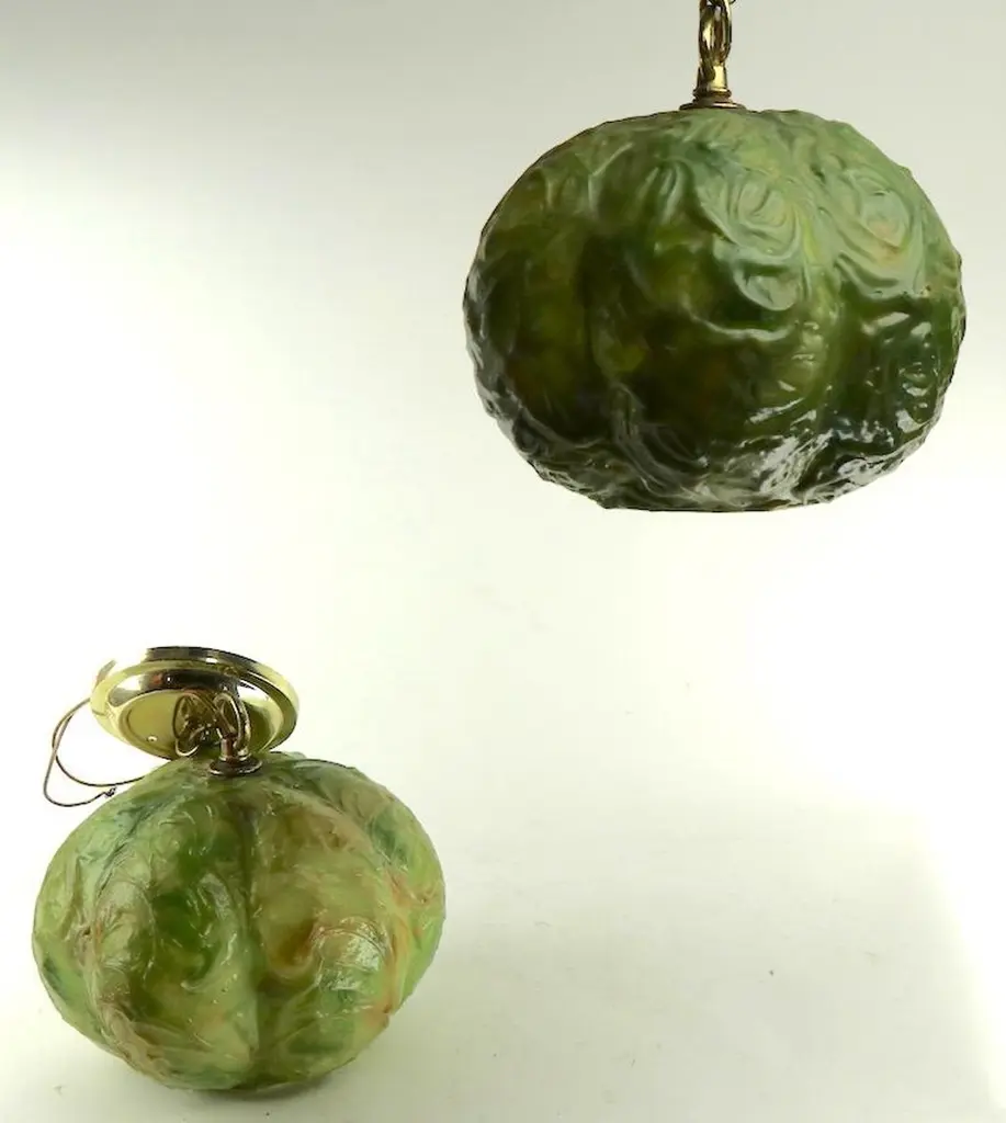 Molded Plastic Cabbage Chandelier By Feldman Pair Available