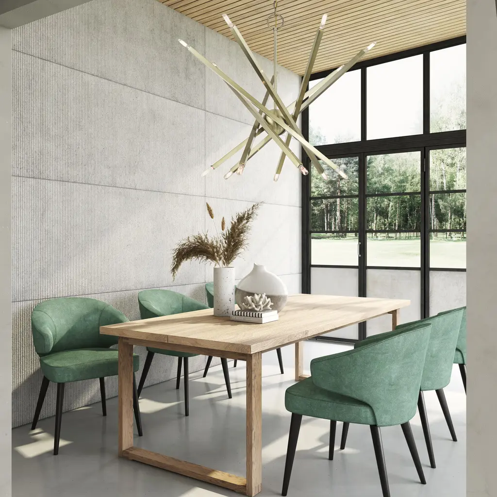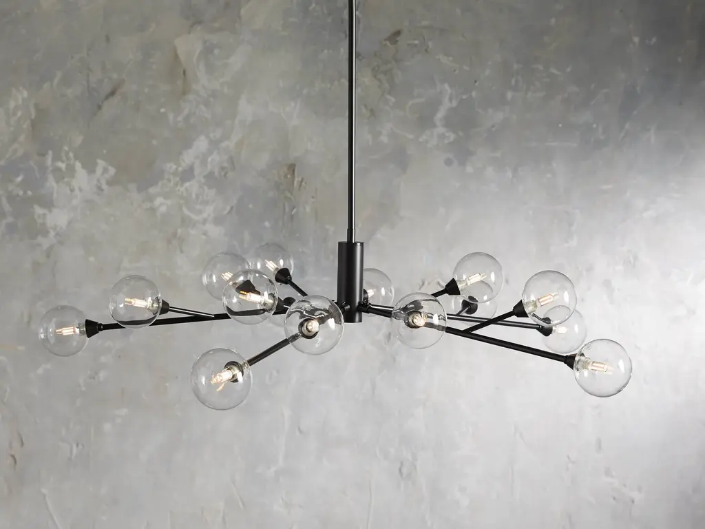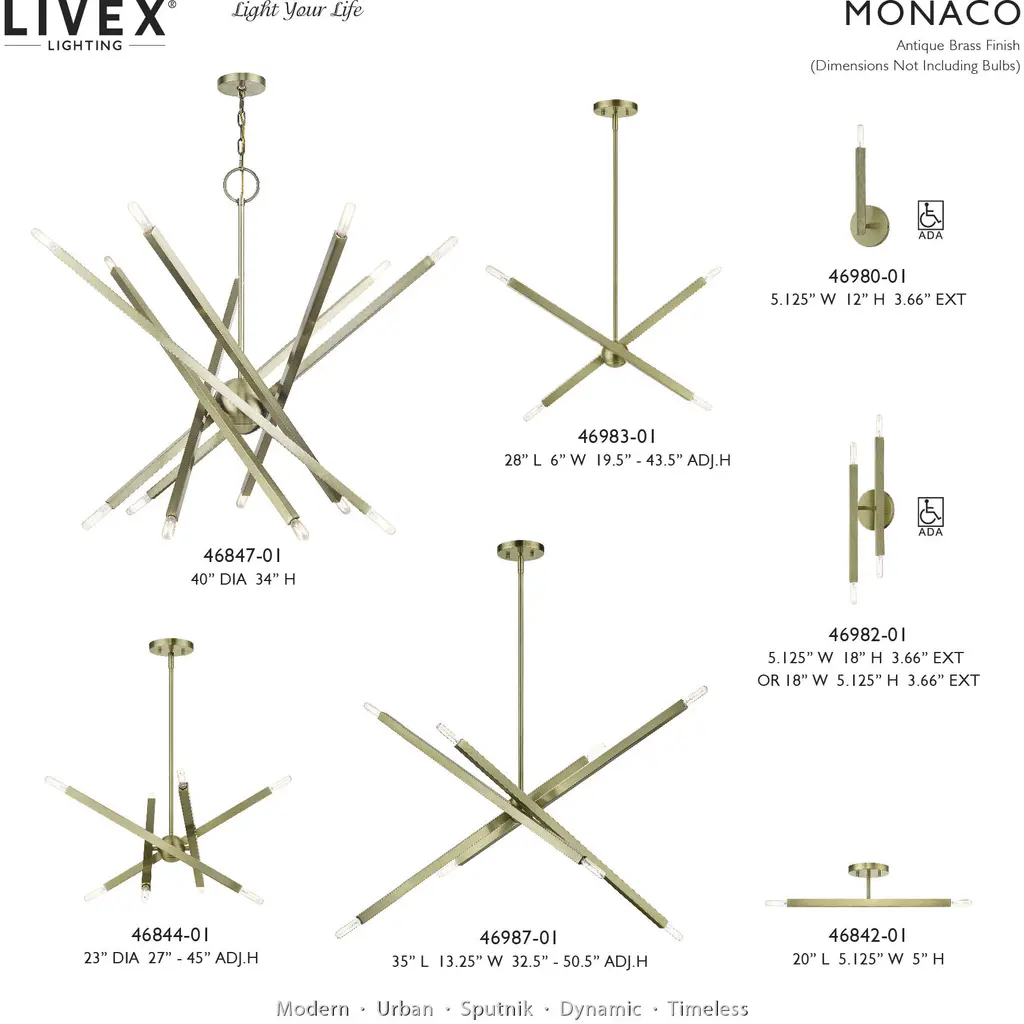 The Monaco collection inherits the multidirectional lines inspired by the Sputnik. The exposed bulbs glimmer at the end of each rectangular arm to create a touch of understated glamour for todays modern spaces. The timeless design will add a sense of air