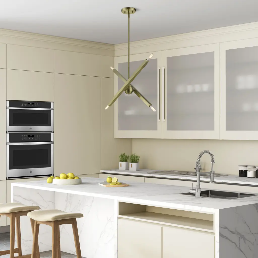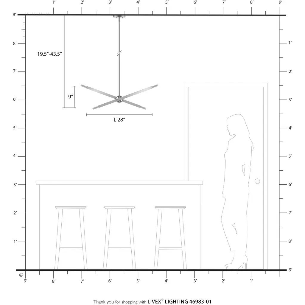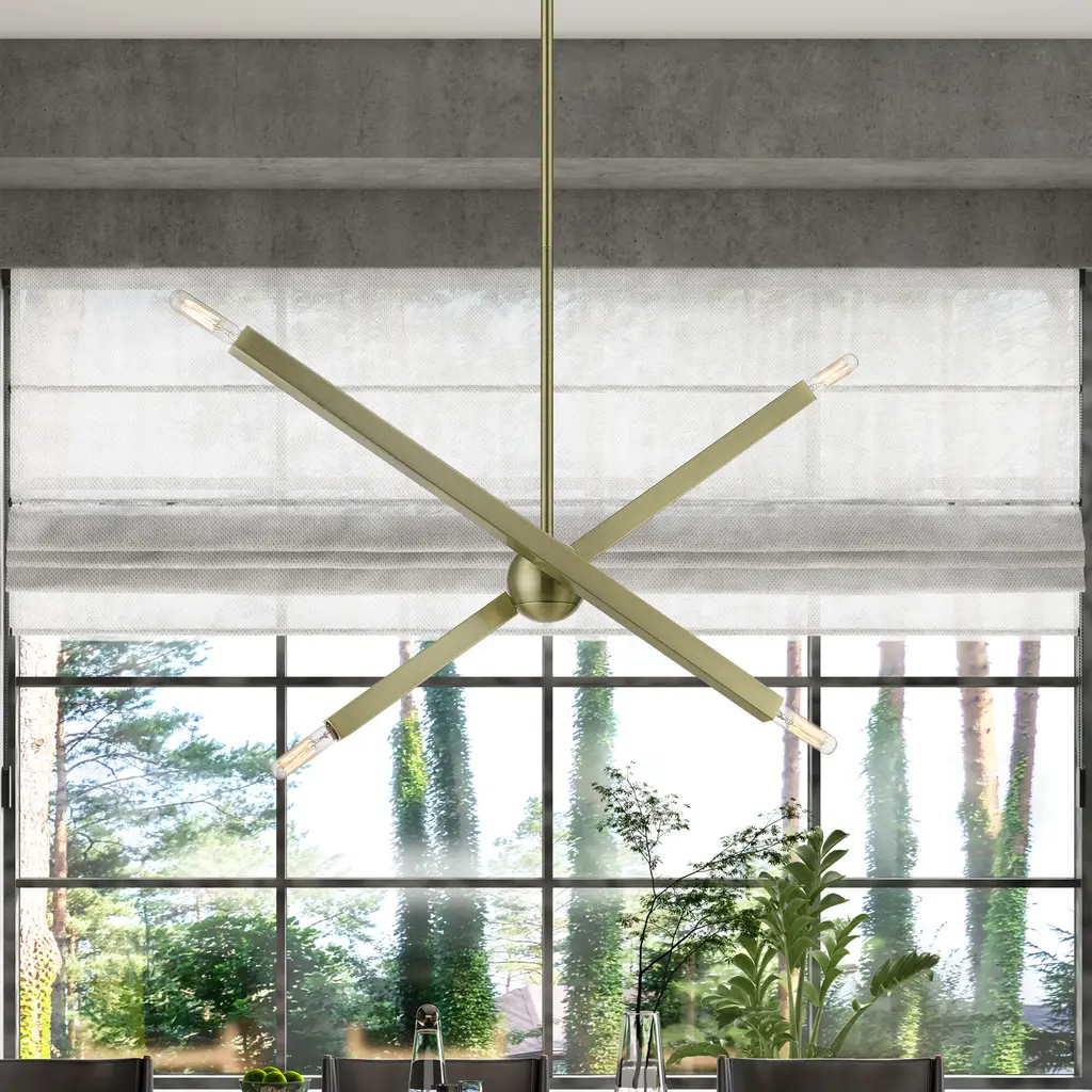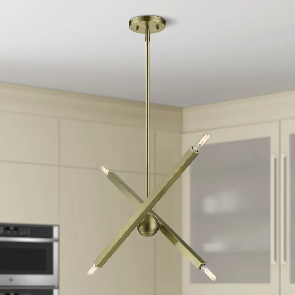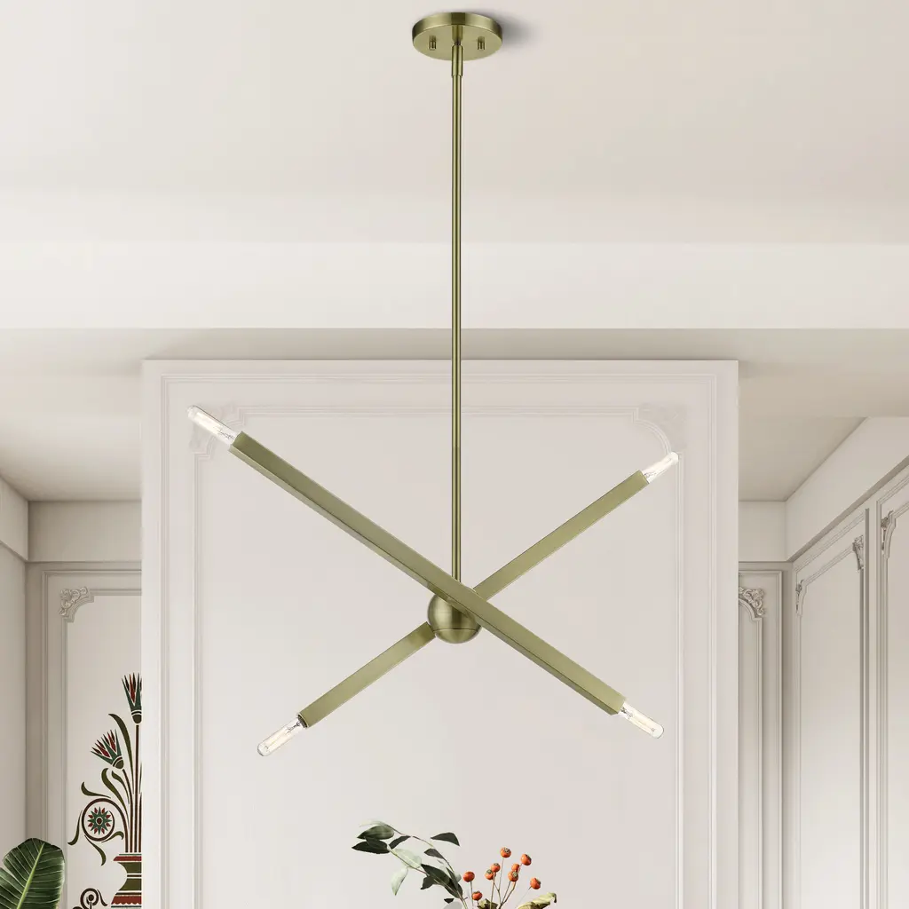 Monaco 4 Light 28 Inch Antique Brass Linear Chandelier Ceiling Light