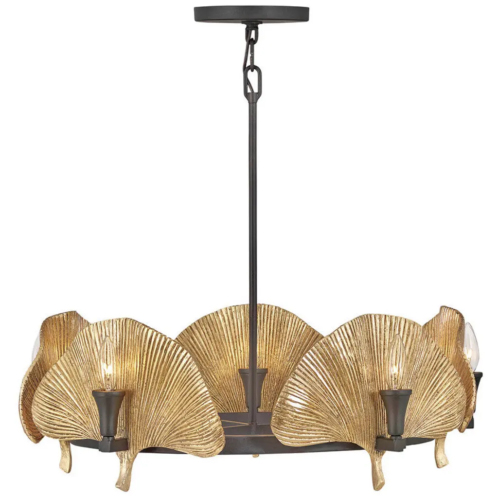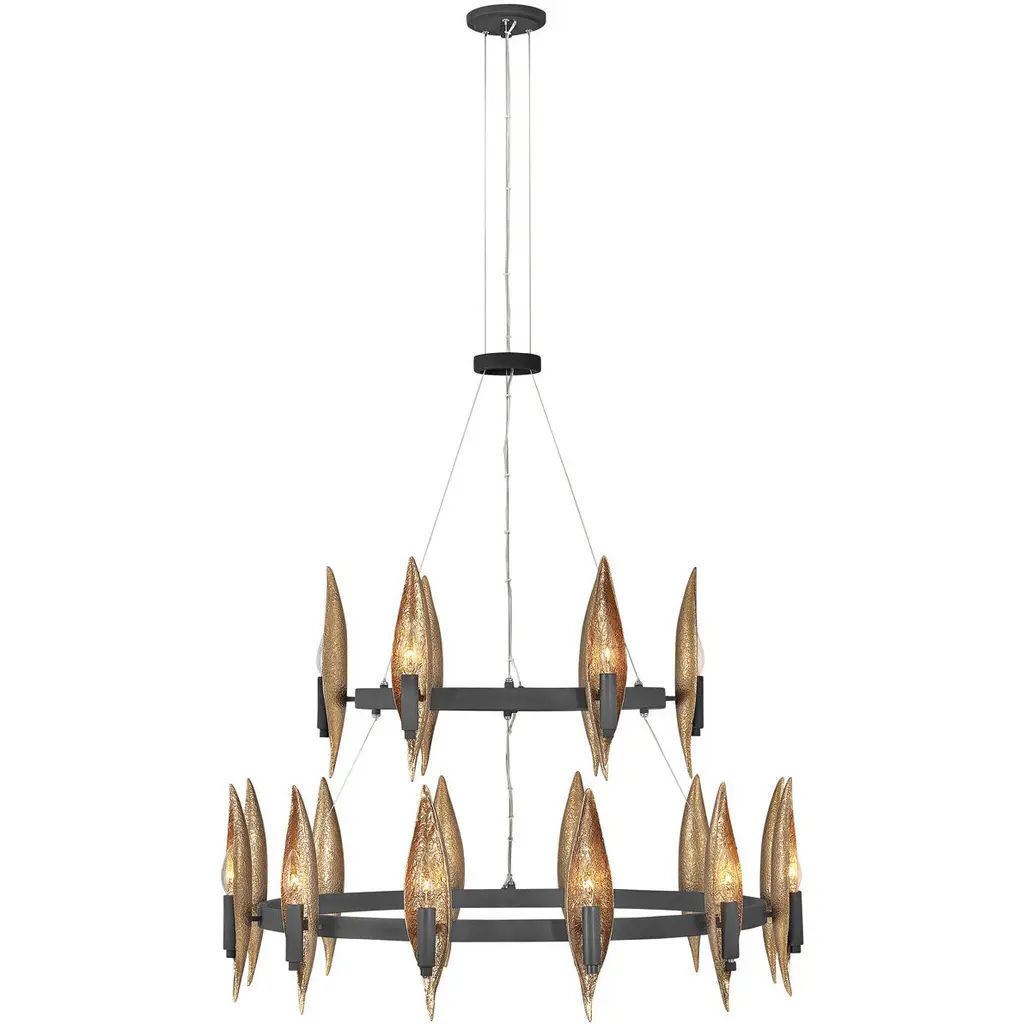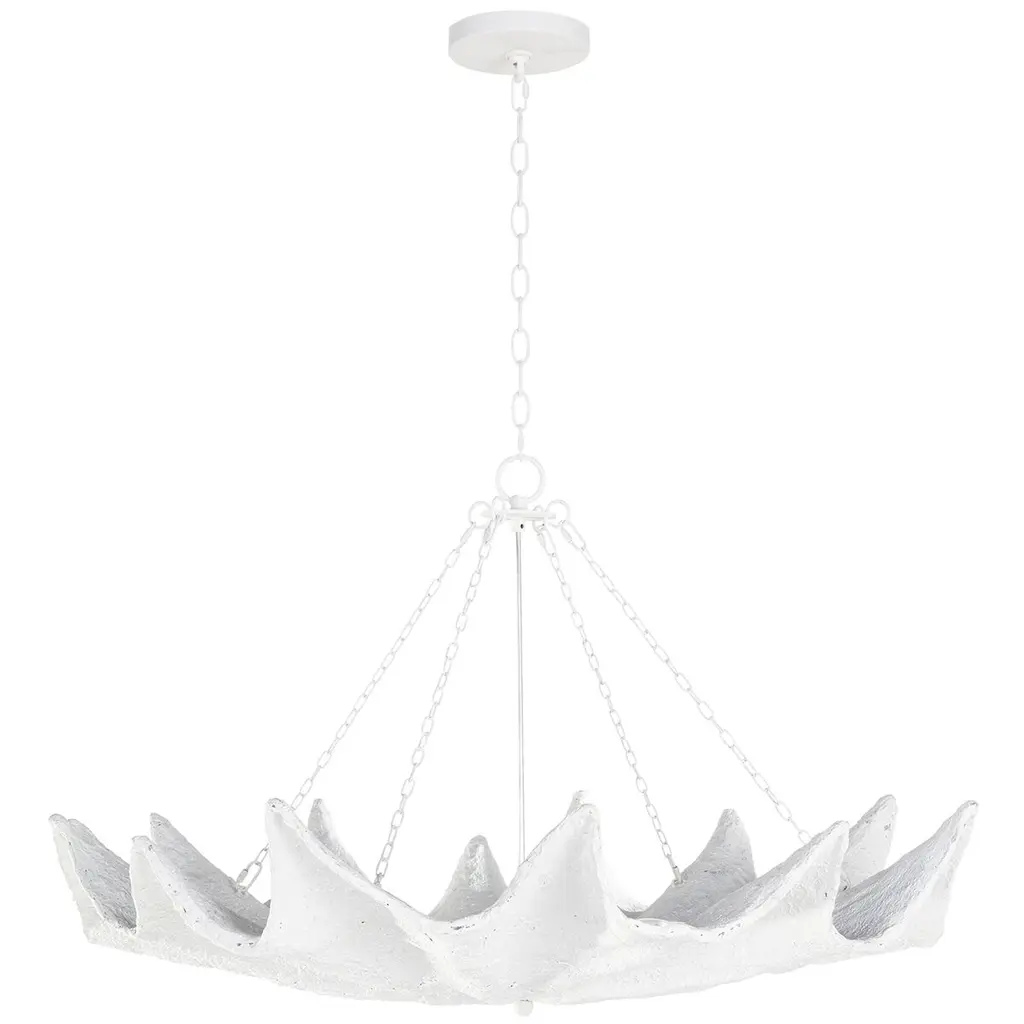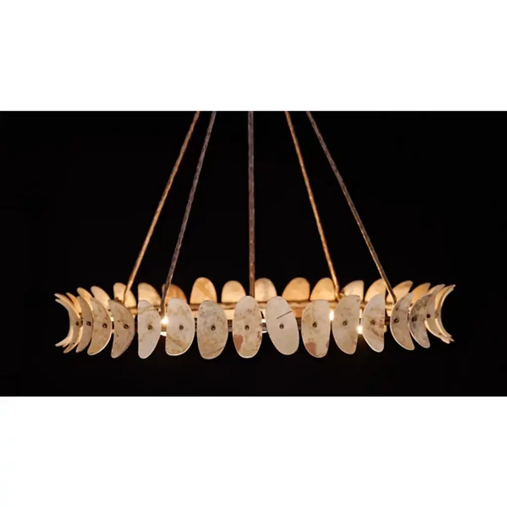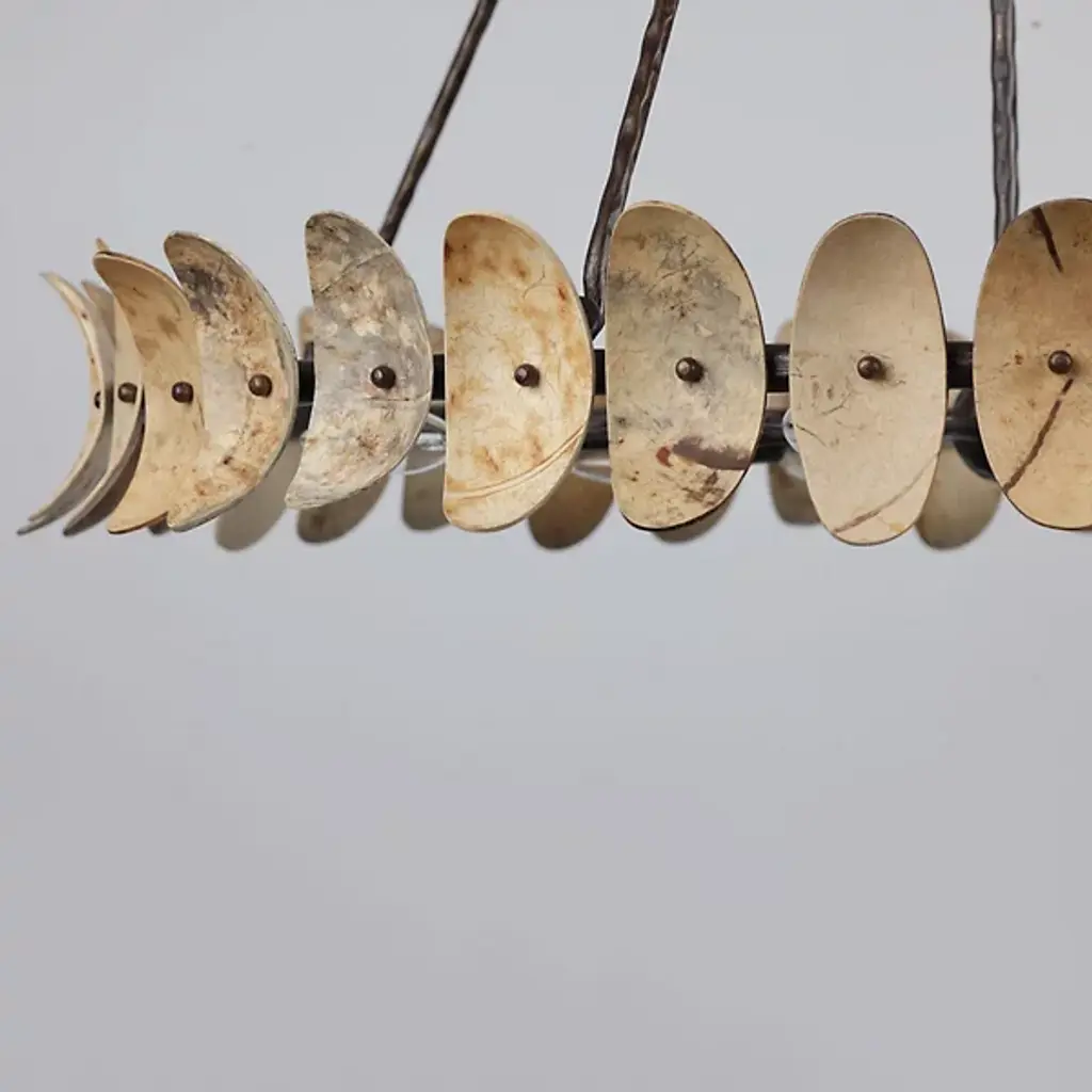 The Monarch Chandelier from Savoy House was designed by award-winning interior designer and TV host Breegan Jane and exemplifies her signature nature-inspired aesthetic. This striking fixture resembles an oversized statement bracelet adorned with leaves crafted from unique stained natural coco shell pieces. Each shell element features distinct variations in pattern and color, ensuring every Monarch Pendant is one-of-a-kind. With its organic materials and bold design, this fixture serves as a standout piece, bringing natural elegance and ample illumination to interior spaces.