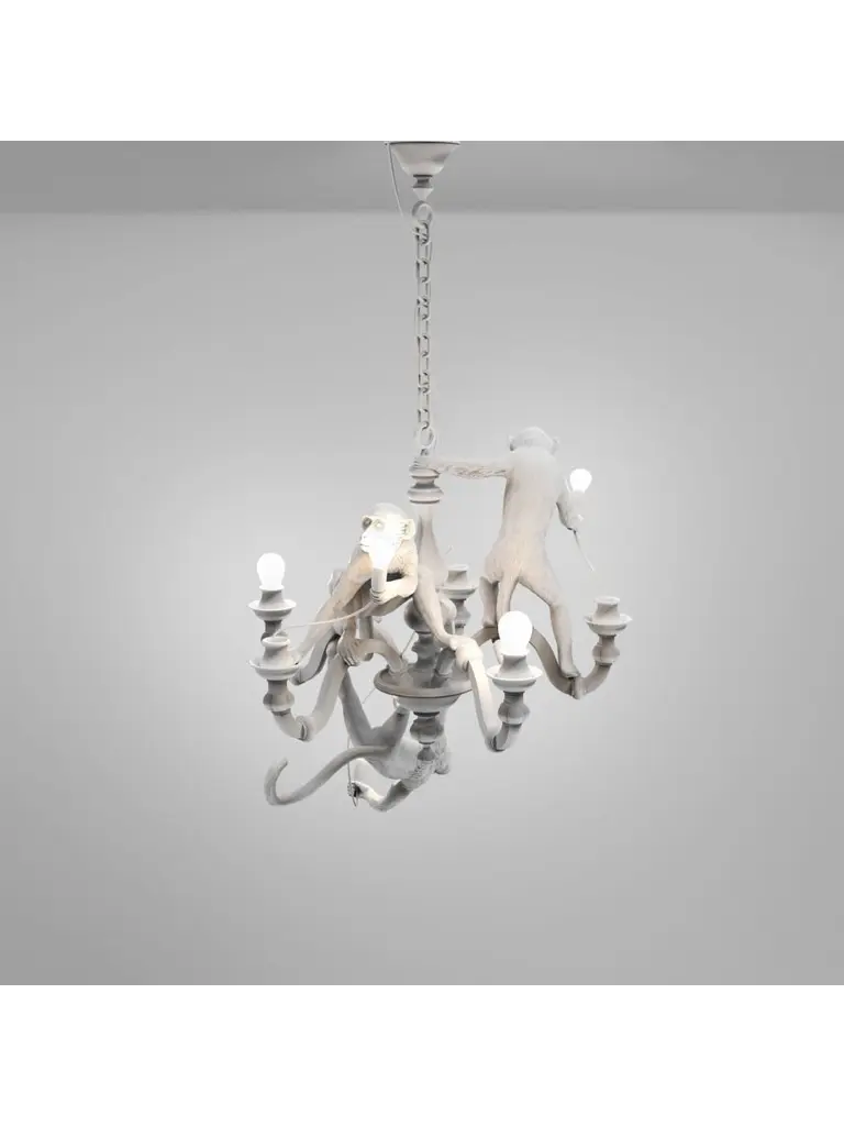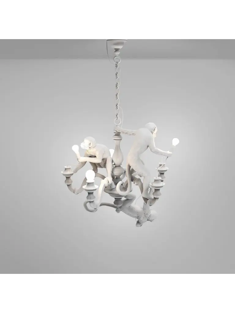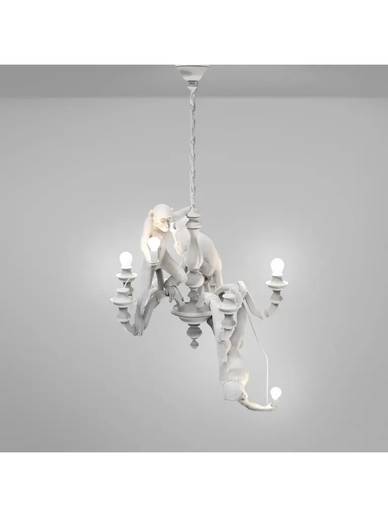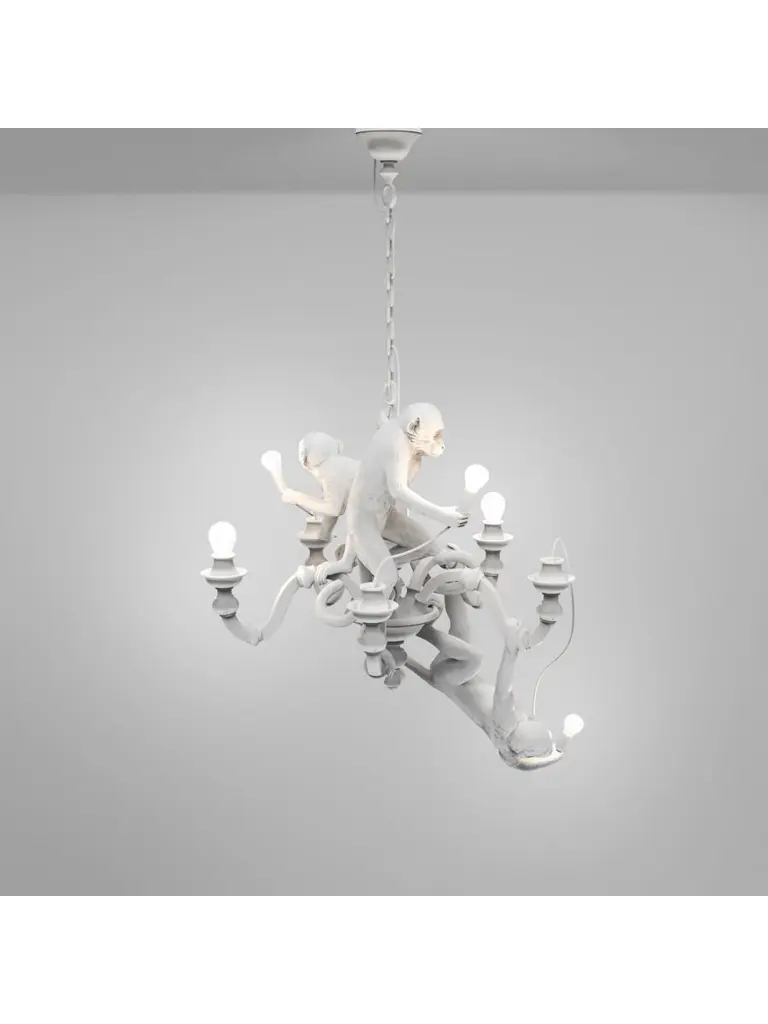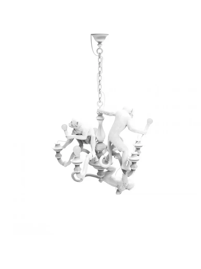 Irreverent and mischievous, the three little monkeys designed by Marcantonio took over an entire chandelier! Unconventional in its white splendor, the Monkey chandelier is simply perfect for rooms out of the ordinary.