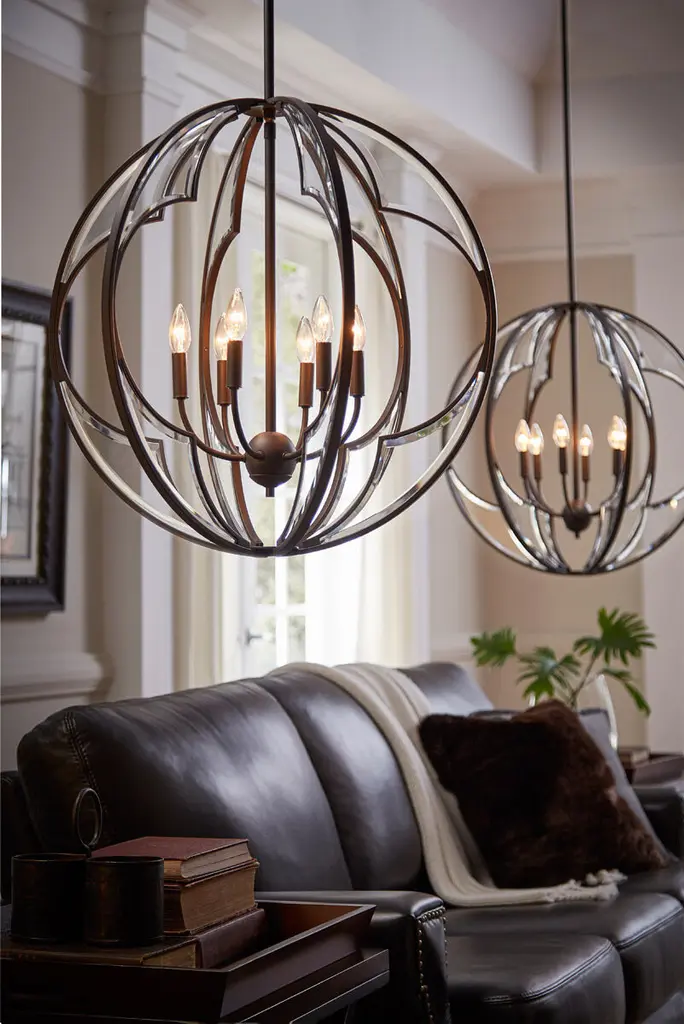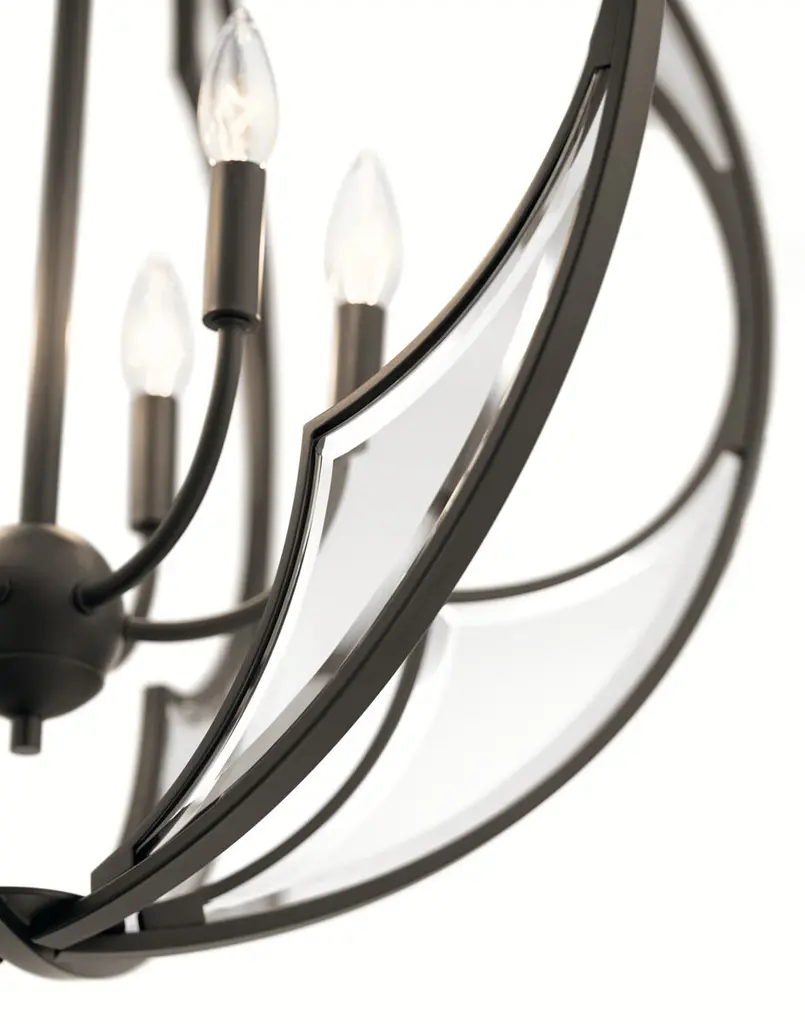 Clear and beveled glass panels add instant elegance and glamor to this 6 light chandelier from the Montavello collection's transitional orb design in Olde Bronze.