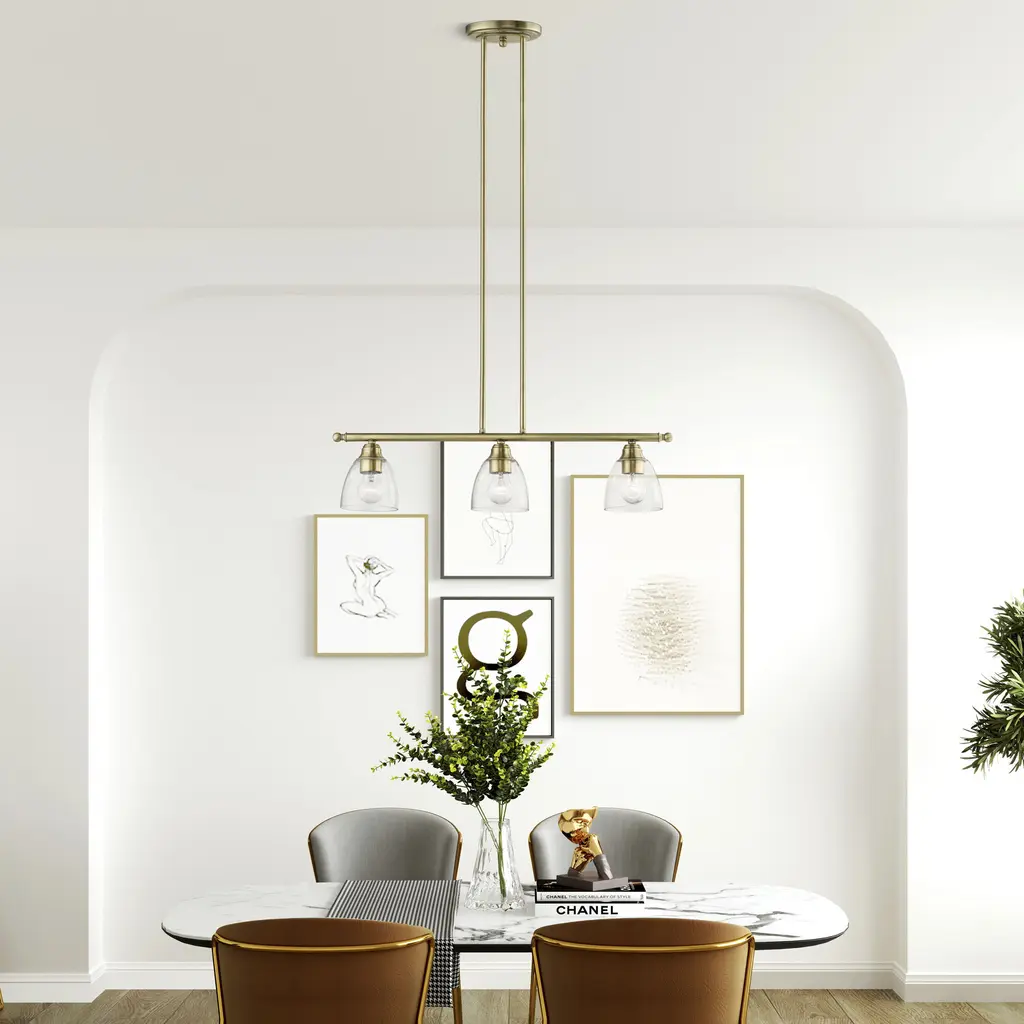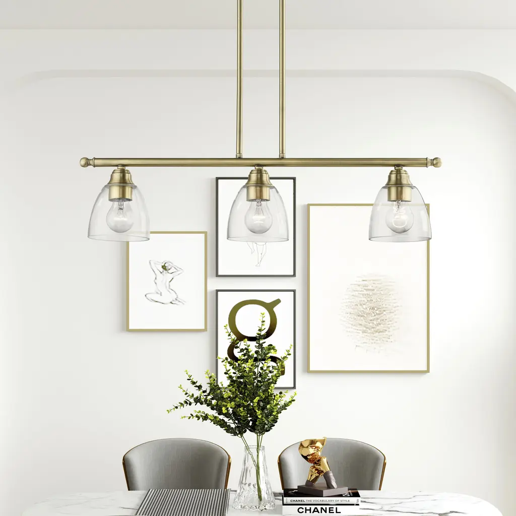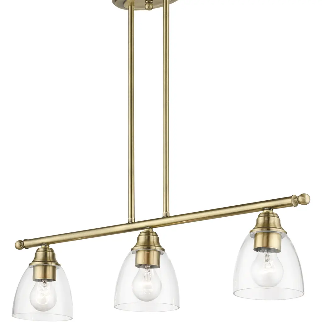 Montgomery 3 Light 30 Inch Antique Brass Linear Chandelier Ceiling Light