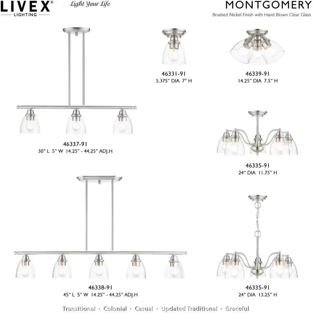 Montgomery 5 Light 45 Inch Brushed Nickel Linear Chandelier Ceiling Light