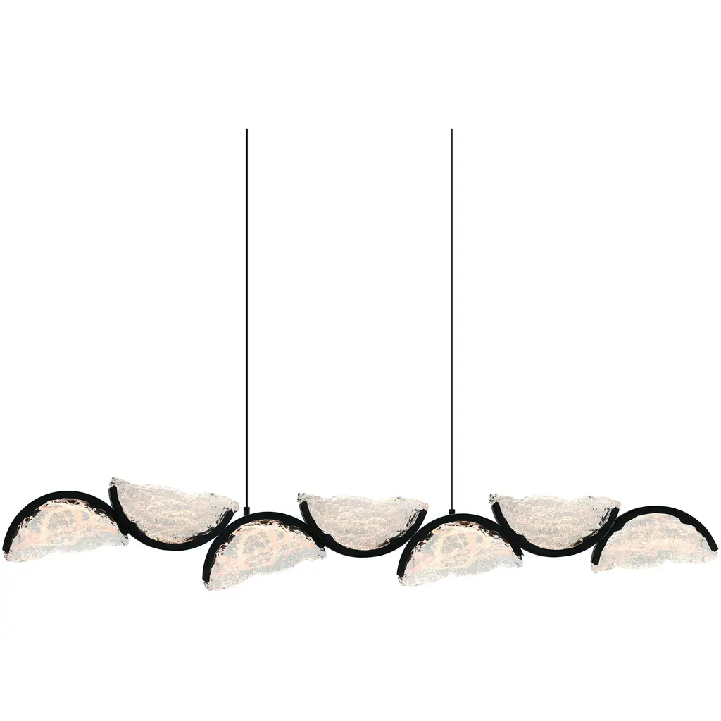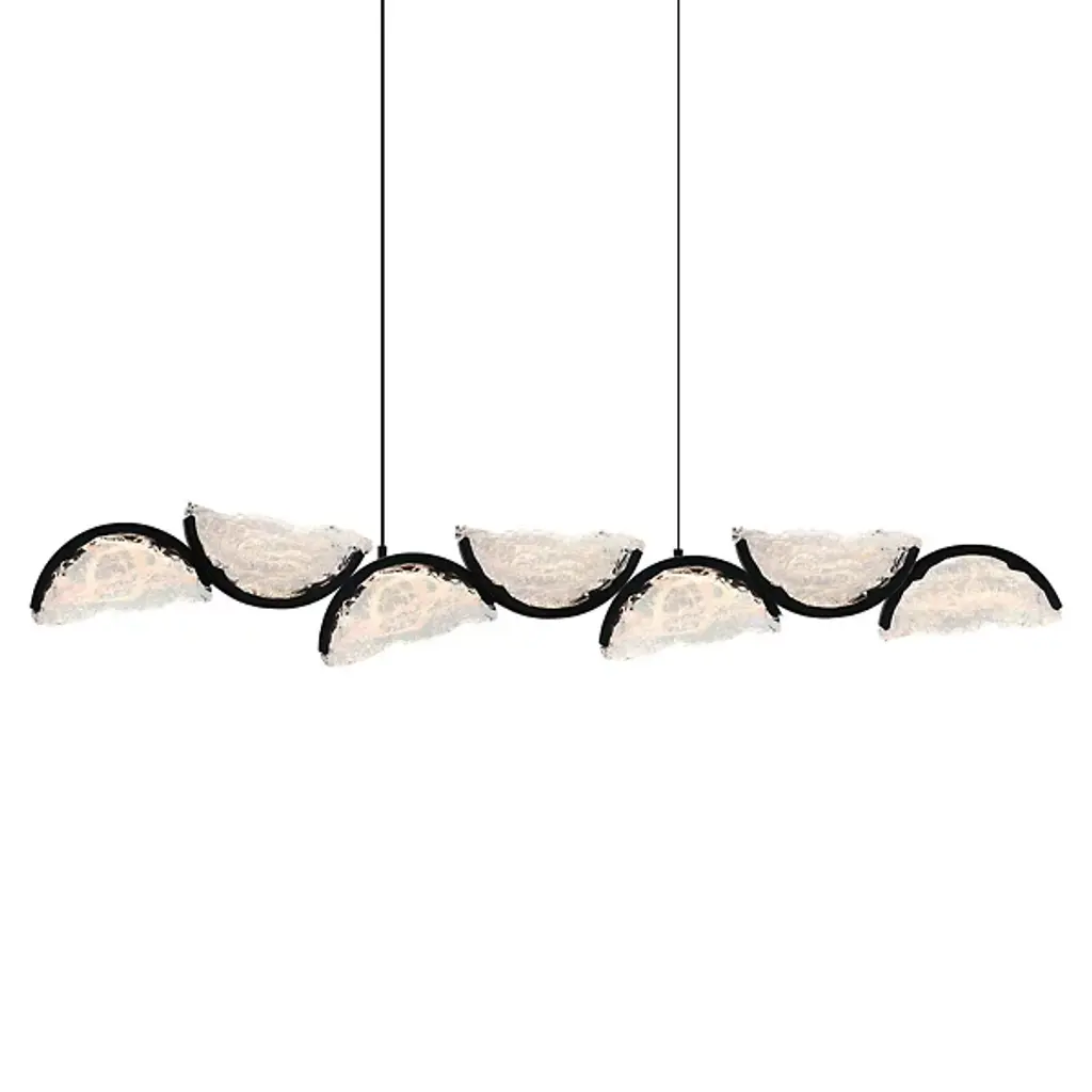 The Moon Integrated LED Chandelier is a breathtaking fusion of modern design and artisanal craftsmanship. With a bold Black finish and crescent-shaped panels made from intricately textured, handcrafted glass, this chandelier adds sophisticated character and ambient warmth to any space. Each glass piece is individually crafted, creating a unique fixture that stands out as a true work of art. The contrast between the deep black frame and luminous glass creates a dramatic visual effect, making it an ideal centerpiece for dining rooms, living areas, or grand entryways. Bring celestial beauty into your home with this stunning chandelier where timeless design meets handcrafted elegance.
