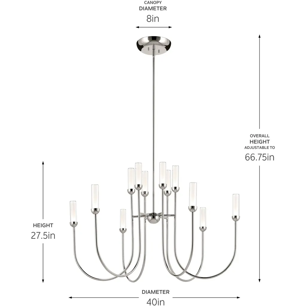 On-trend yet timeless, the Moraine LED chandelier is true elegance. Swooping concentric curves update the traditional chandelier look. Each candle holder cups the integrated LED light source with layered glass. Clear outer glass pairs with an etched interior to give the illusion of ambient candles that light up any space.