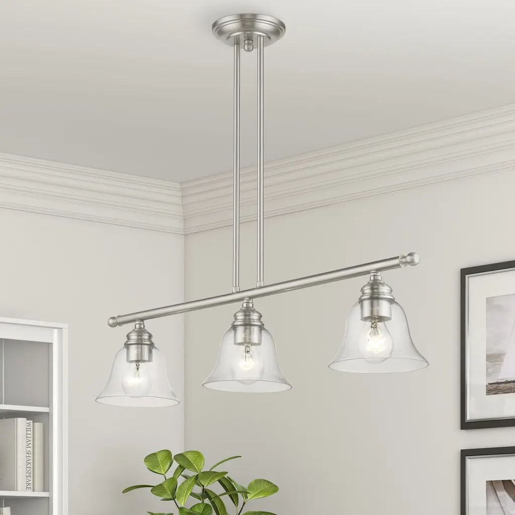 Moreland 3 Light 30 Inch Brushed Nickel Linear Chandelier Ceiling Light