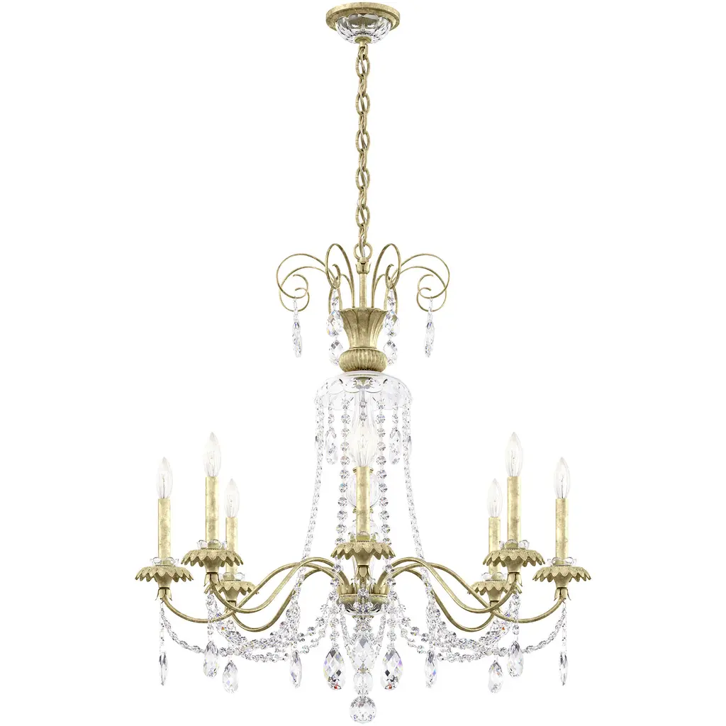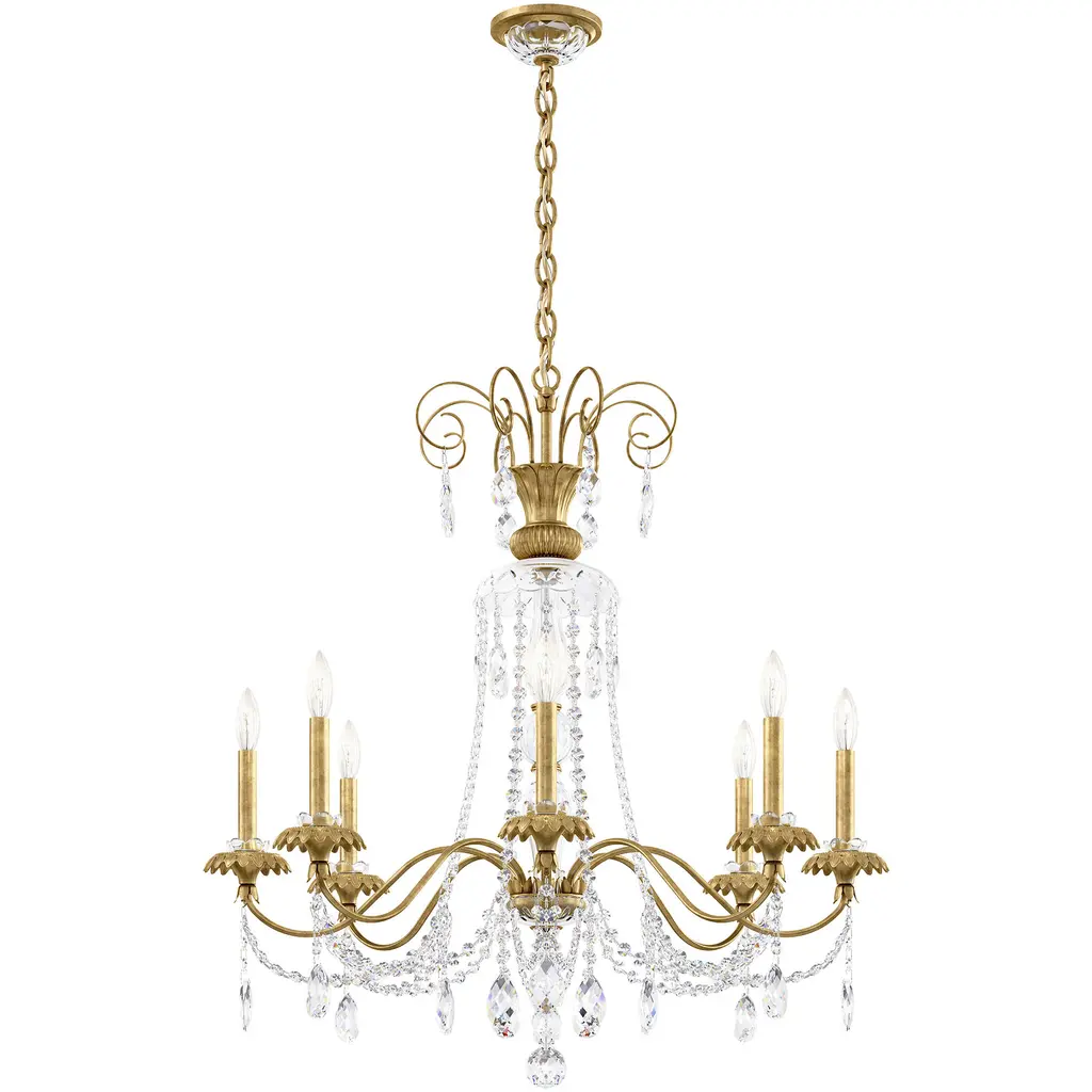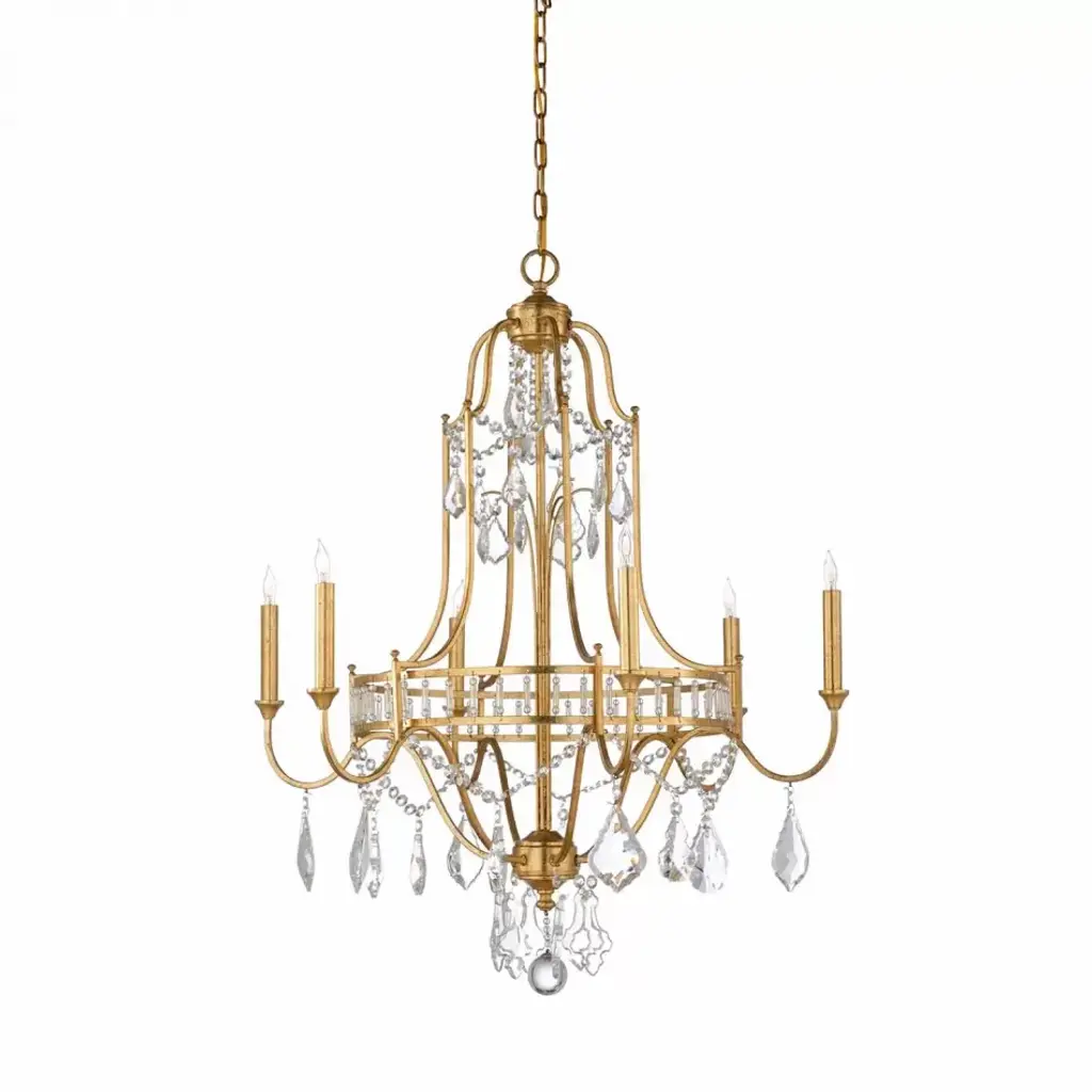 Flambeau's Mignon 10 light chandelier is a sparkling masterpiece when placed as a focal point in your space. Whether Boho Chic or French decor this chandelier's wrought iron frame finished in Dark Antiqued Gold features countless strands of multi-sized hand painted resin pieces that are swagged between the arms. Place in a dining room or kitchen for a touch of glam, and definite conversation piece. At 37 inches wide and 42 Inches high, this chandelier gives a striking Updated Traditional feel to your space.