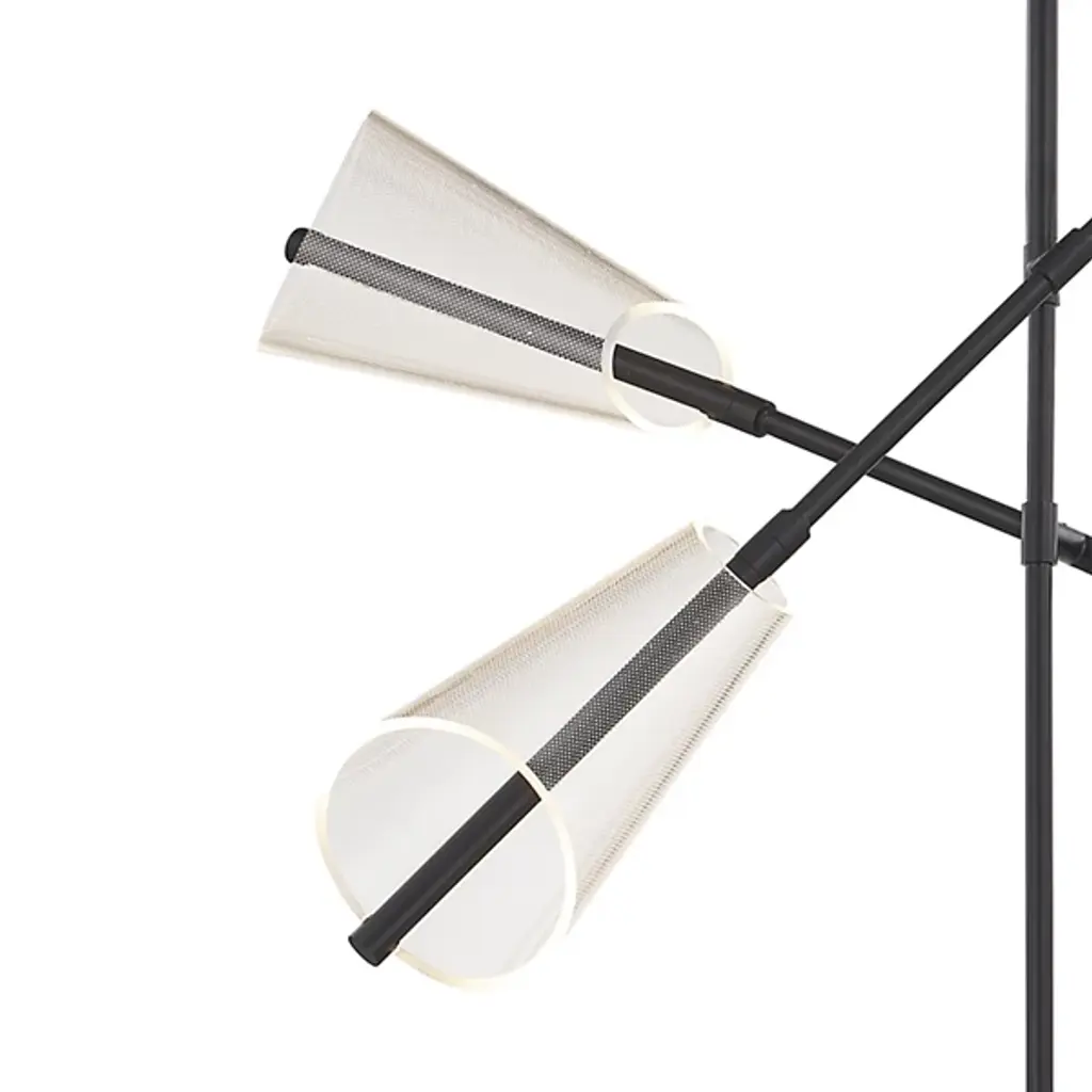 Classic shapes take on a new dynamic form in the alluring Mulberry LED Chandelier from Kuzco Lighting. Minimal, modern forged arms and distinctive edge-lit shades help set the piece apart from standard renditions. Each shade of the Mulberry is crafted with clear etched acrylic for a crisp appearance. It's a refreshing and elevated illumination experience fit to display as a solo piece or in multiples.