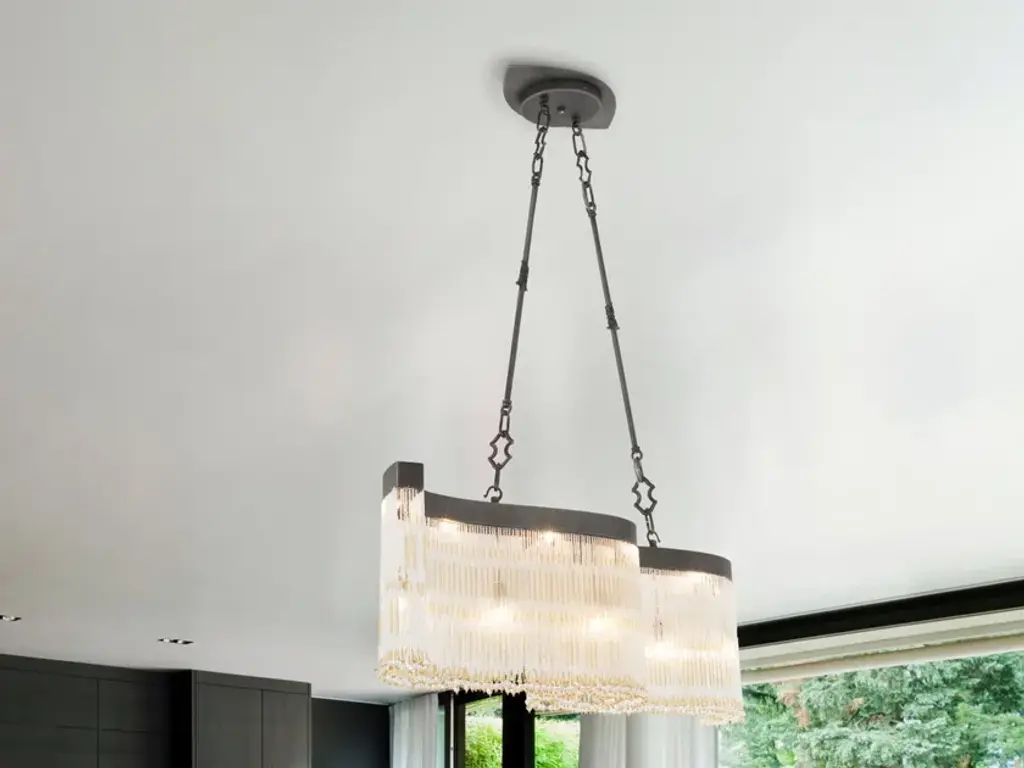 The Mullholland Dr. Collection linear hanging fixture with its hand crafted frame that will completely transform your space to a high end and elegant style with its draped and flowing chain.