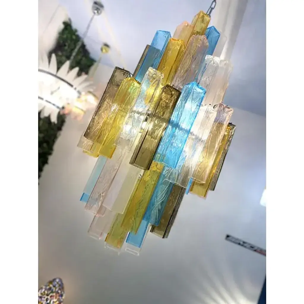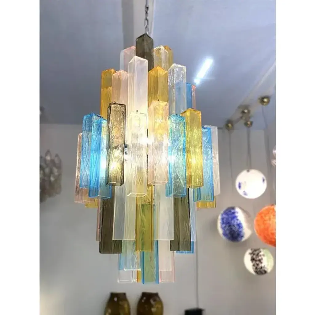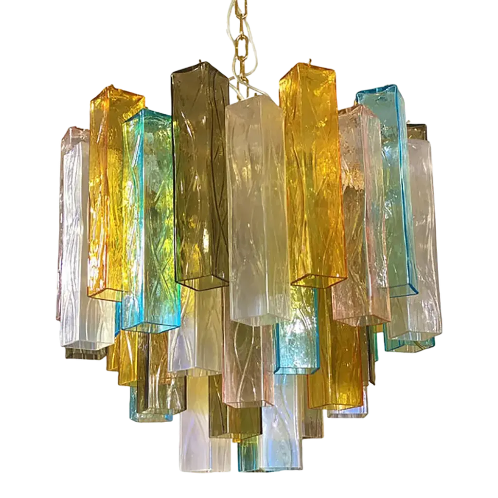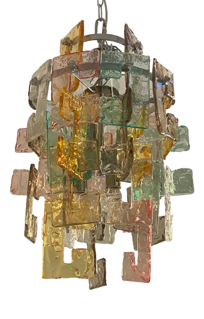 Multicolored Squared Murano Glass Chandelier By Simoeng