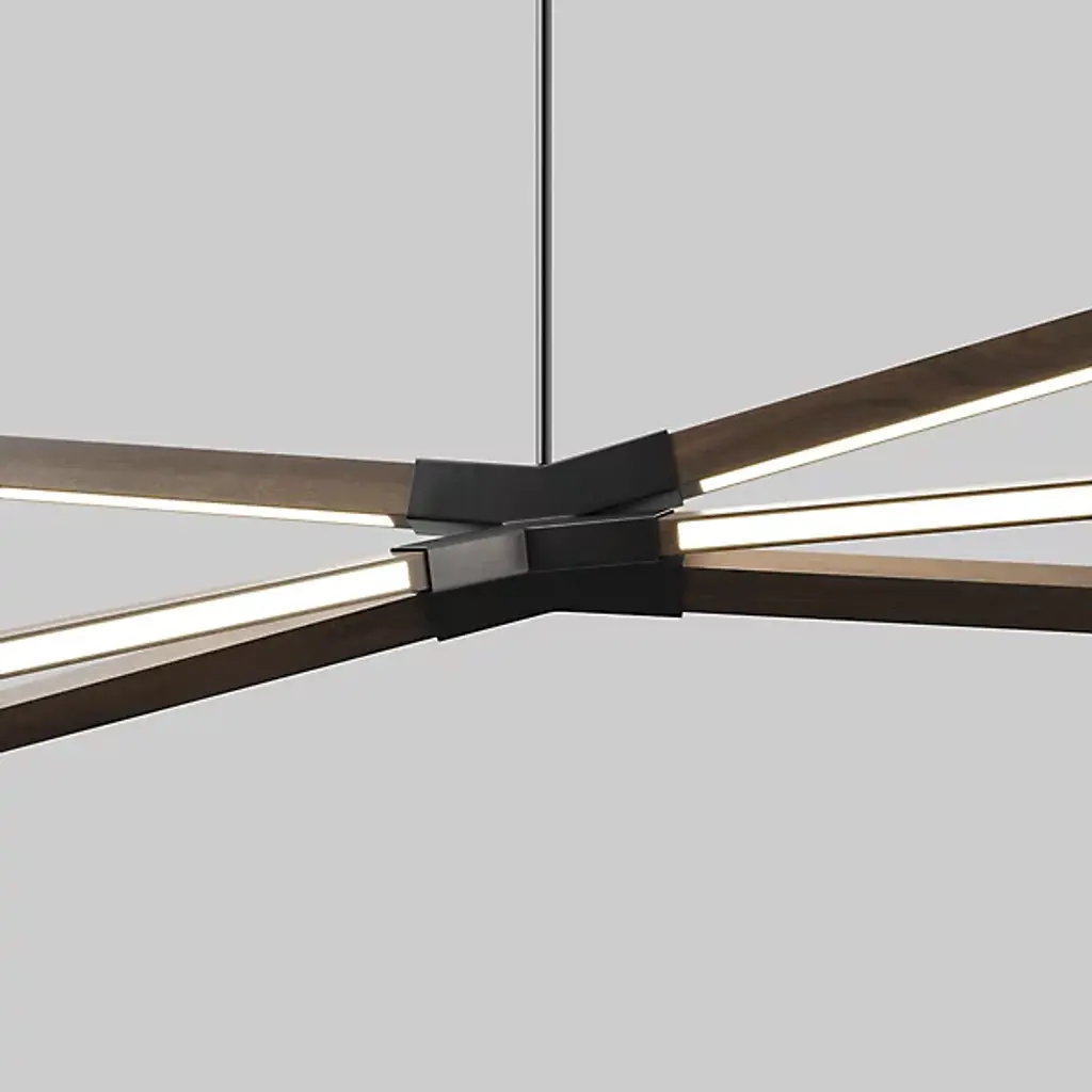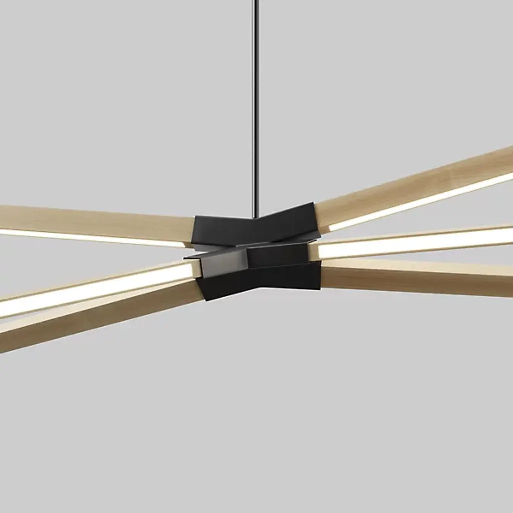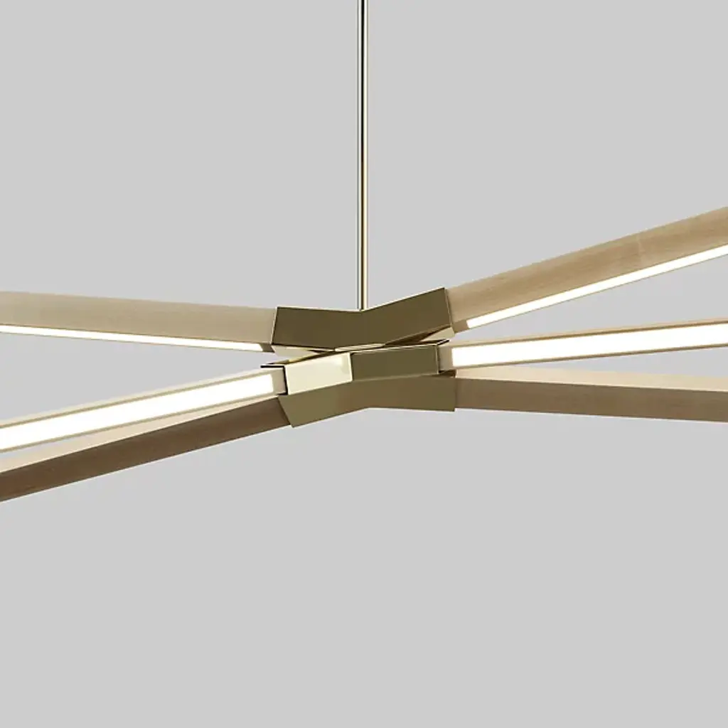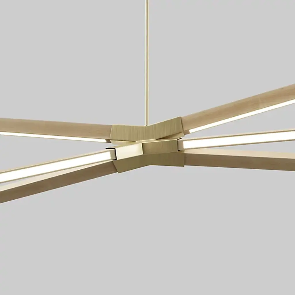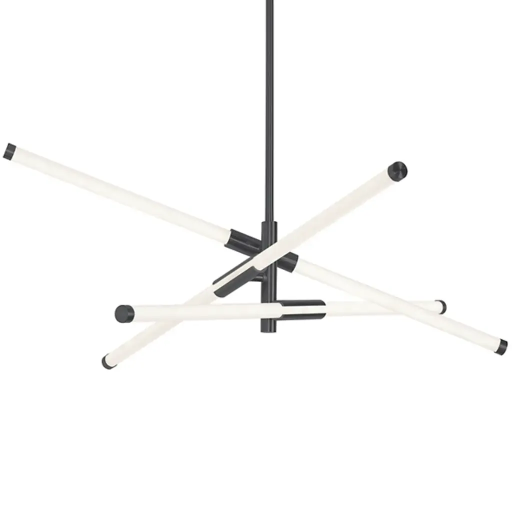 Like fireworks suspended in time, the Multiple Sky Bang LED Chandelier by Stickbulb creates a stunning visual statement in minimal form. A series of slender downrods descending from a shared canopy suspend metal hubs and beams of various sizes. Highly customizable, each beam involves a fully integrated energy-efficient LED light and can be affixed to the metal hub in any desired arrangement for a softly diffused ambient uplight or a more focused downlight. Handmade in New York from sustainably sourced materials, this fixture is a smartly designed focal point for residential or commercial spaces.