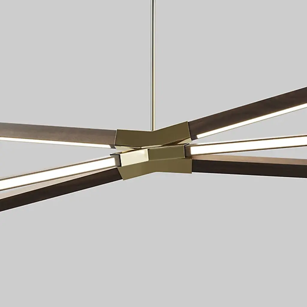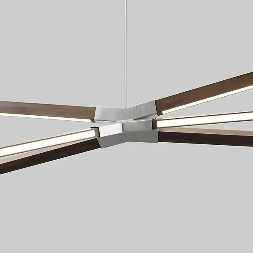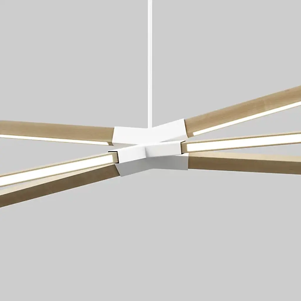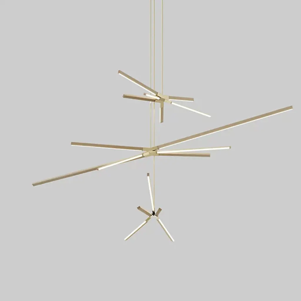 Like fireworks suspended in time, the Multiple Sky Bang LED Chandelier by Stickbulb creates a stunning visual statement in minimal form. A series of slender downrods descending from a shared canopy suspend metal hubs and beams of various sizes. Highly customizable, each beam involves a fully integrated energy-efficient LED light and can be affixed to the metal hub in any desired arrangement for a softly diffused ambient uplight or a more focused downlight. Handmade in New York from sustainably sourced materials, this fixture is a smartly designed focal point for residential or commercial spaces.
