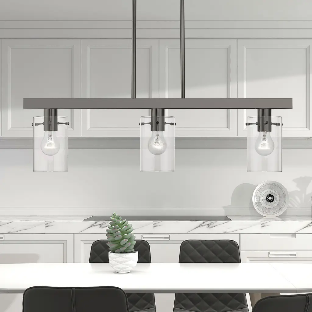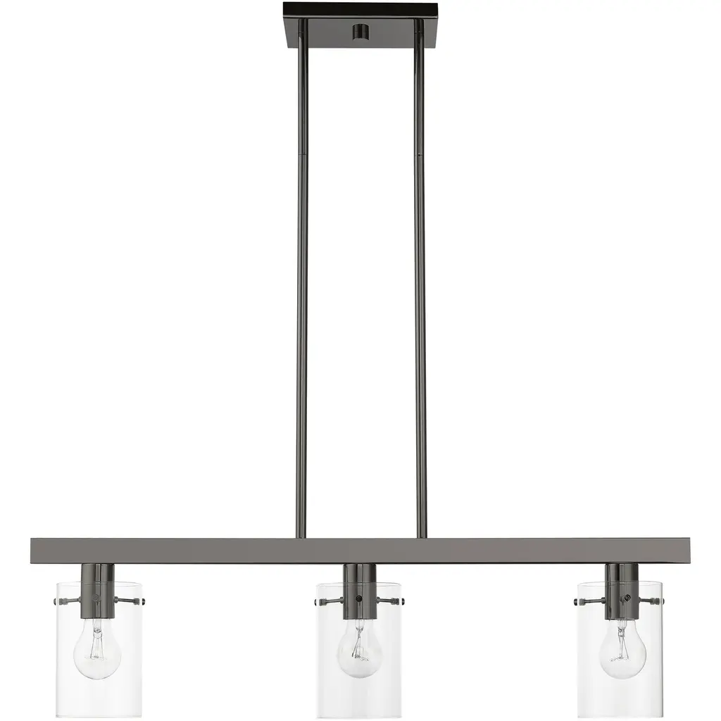 Munich 3 Light 30 Inch Black Chrome Linear Chandelier Ceiling Light