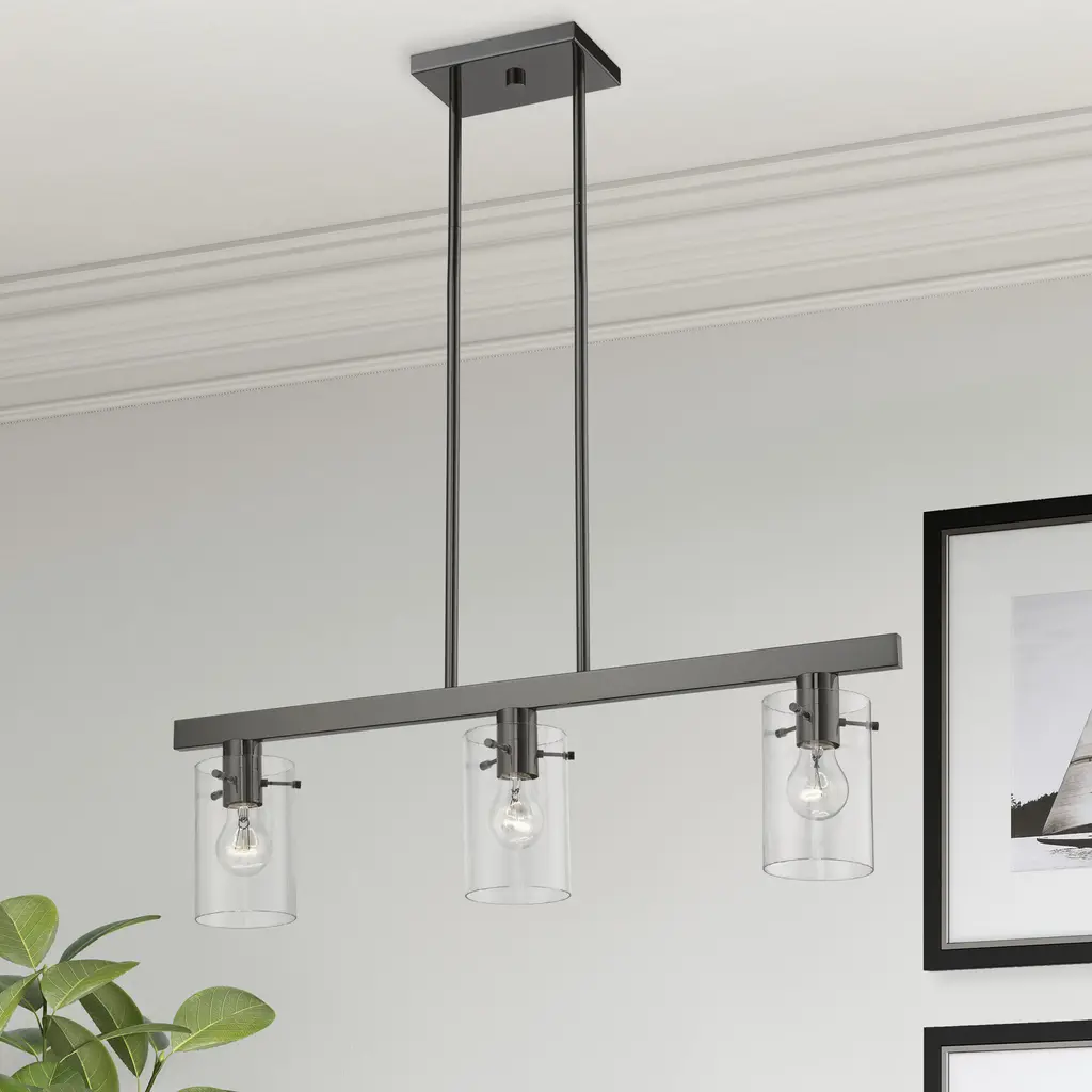 3 Light Black Chrome Linear Chandelier