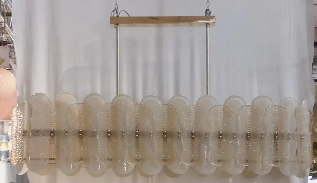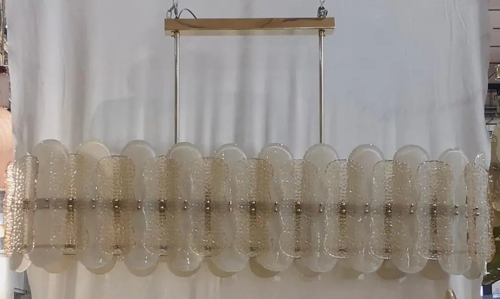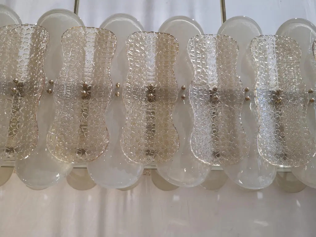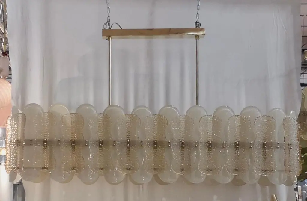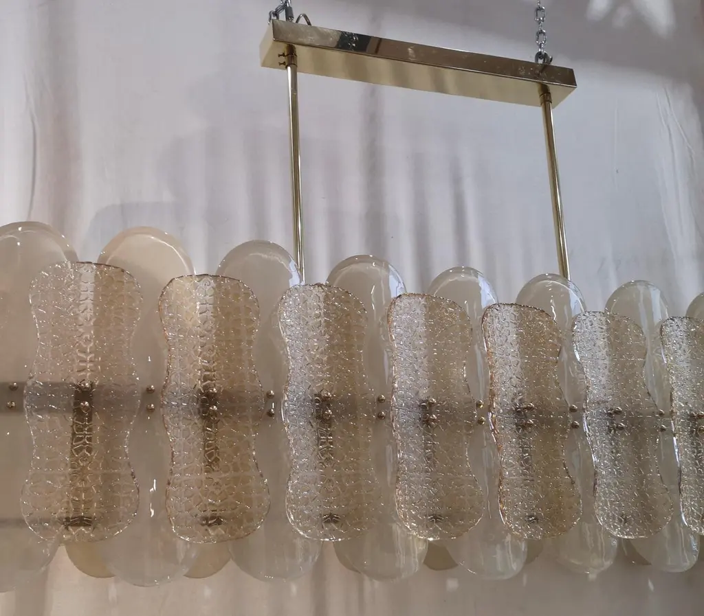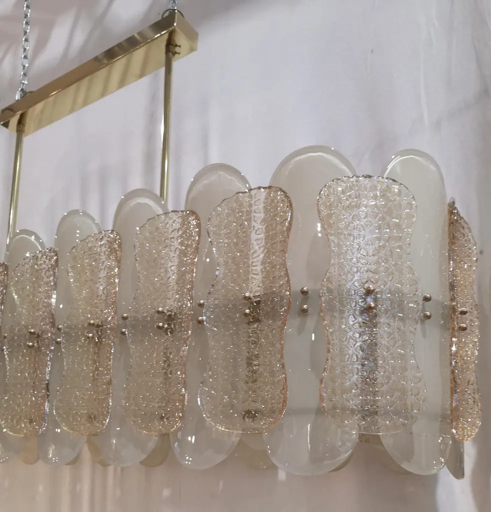 Murano Art Glass Rectangular Champagne Color Mid-Century Chandelier, 2000