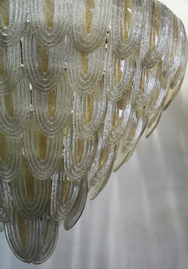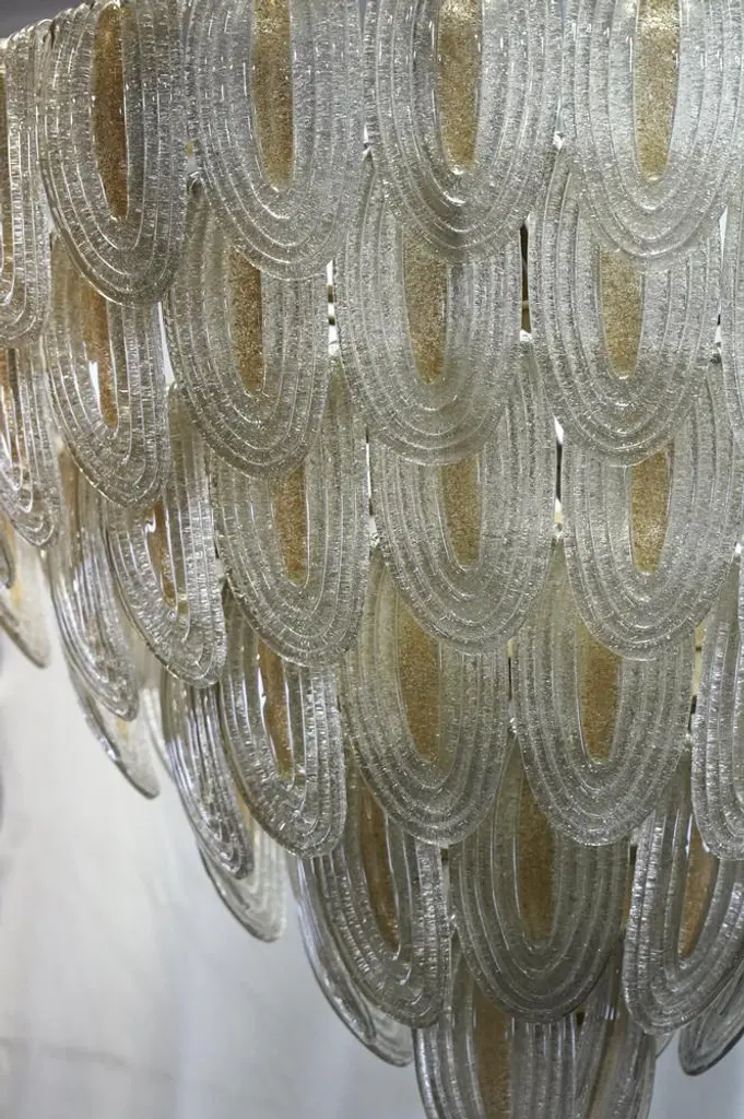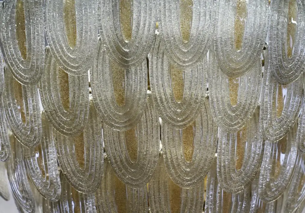 Murano Art Glass Round Gold And Transparent Chandelier, 2000