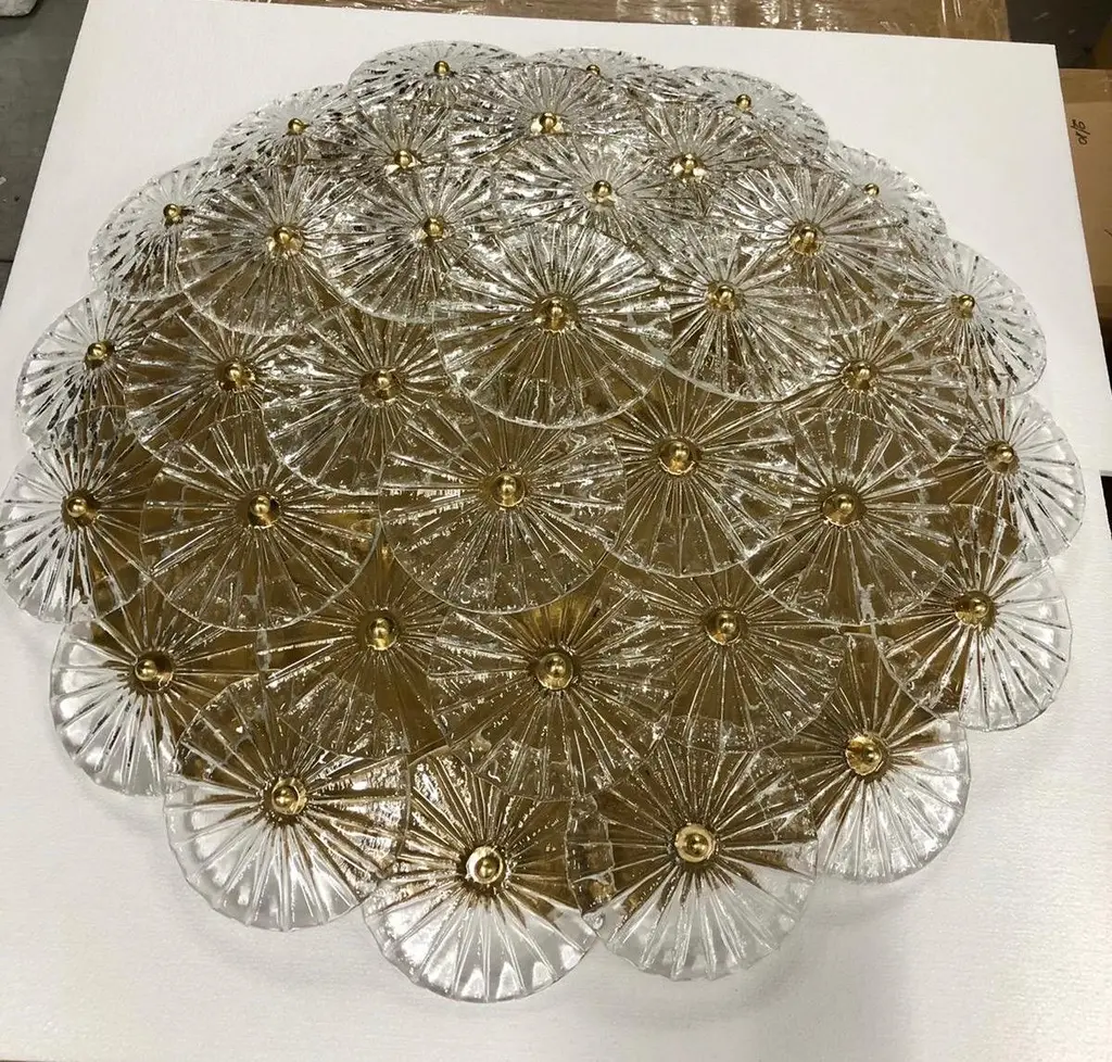 Murano Art Glass Transparent Mid-Century Chandelier And Ceiling Light, 2020