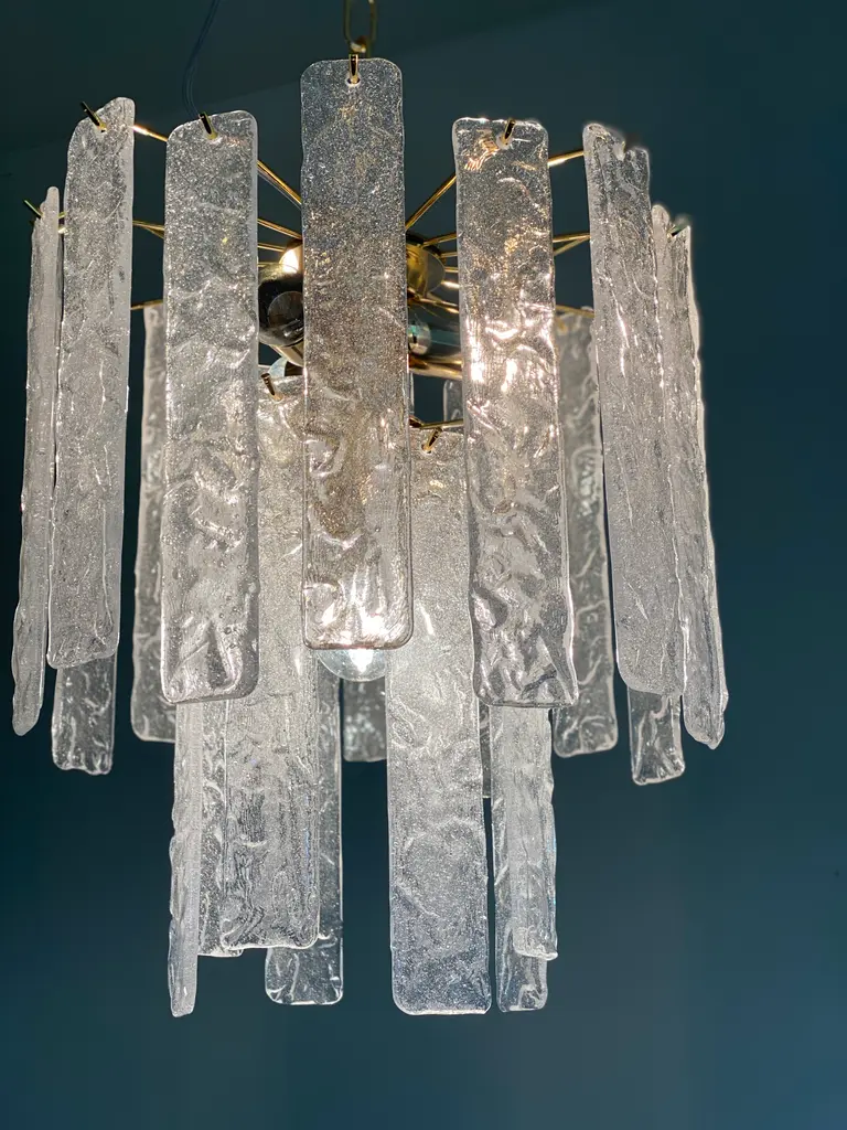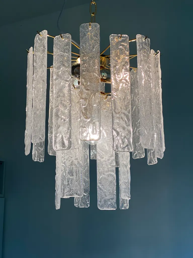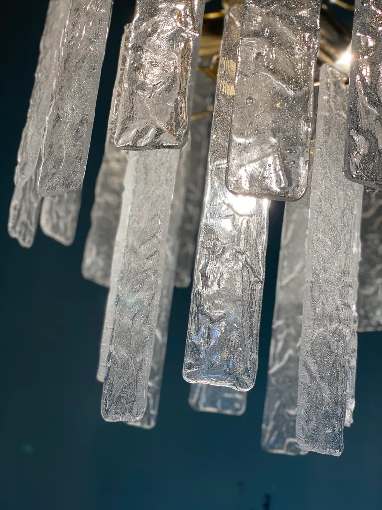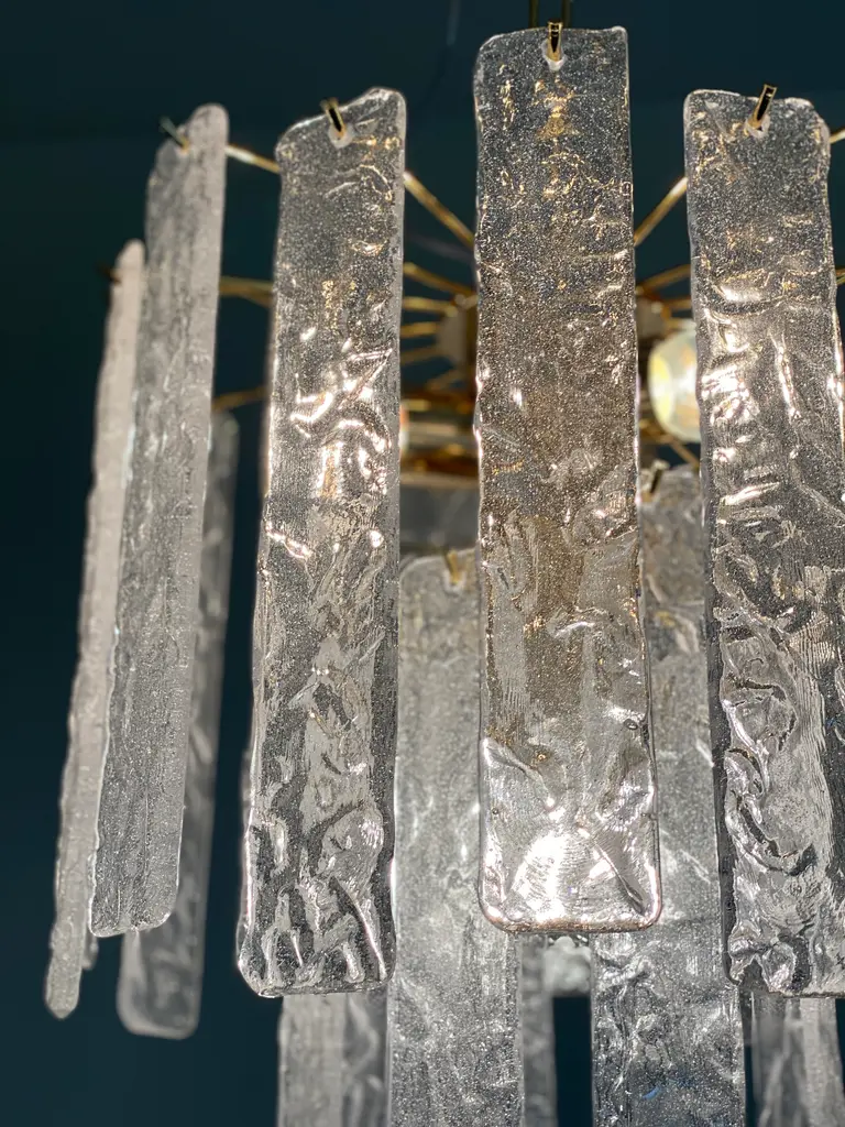 Murano Glass Chandelier With Hammered Strips ”Listelli” By Simoeng